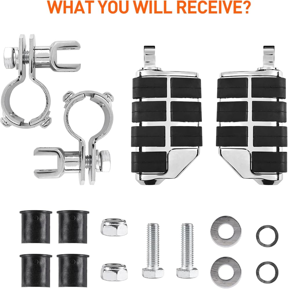 سهلة التركيب ◀ ◀ العبوة متضمنة: زوج واحد من مساند القدم على الطرق السريعة (يسار ويمين)؛ زوج من محول تثبيت واقي المحرك؛ مجموعة مفاتيح ألين، دليل التعليمات غير متضمن. تصميم تركيب بسيط، سوف تنتهي منه في وقت قصير. تحتاج أوتاد القدم إلى فواصل للمساعدة في التركيب، وقد تحتاج إلى إضافة فواصل إضافية إذا لزم الأمر. ملاحظة: يرجى التأكد من إحكام جميع البراغي بعد التثبيت.