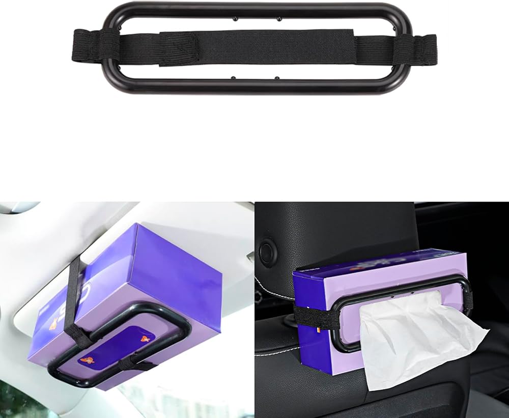Unique Appearance: This paper towel rack is a unique rounded corner rectangular frame design. It is fashionable and simple. The product comes with elastic band design, which can be directly hung on the visor plate. You can fix the paper towel box and it is not easy to drop. At the same time, it does not affect the driver's sight.