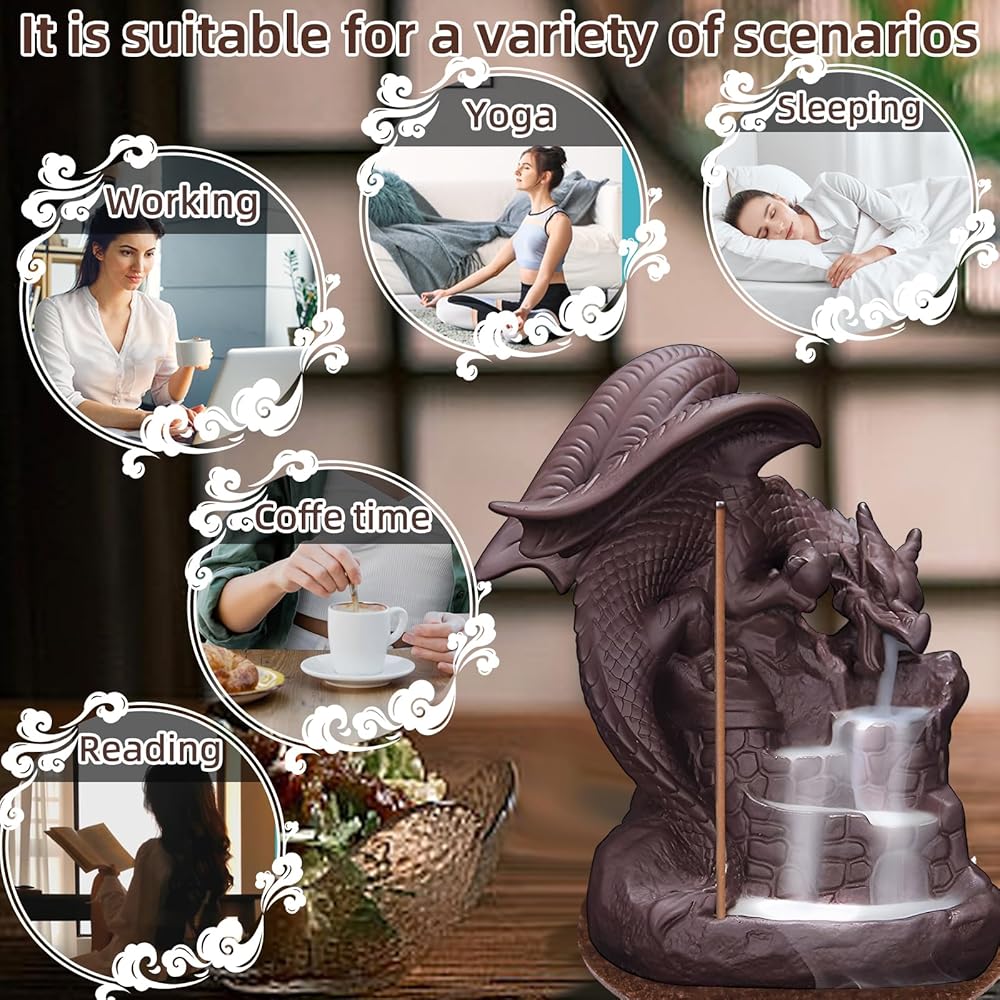بعد فحص صارم، اخترنا أخيرًا مخاريط البخور ذات الروائح المختلفة لك. الرائحة المنبعثة من مخروط خشب الصندل Backflow مريحة للغاية. حامل مخروط البخور ذو التدفق الخلفي مناسب لـ: غرفة المعيشة، غرفة النوم، غرفة اليوجا، غرفة التأمل، غرفة الدراسة وغيرها من الأماكن.