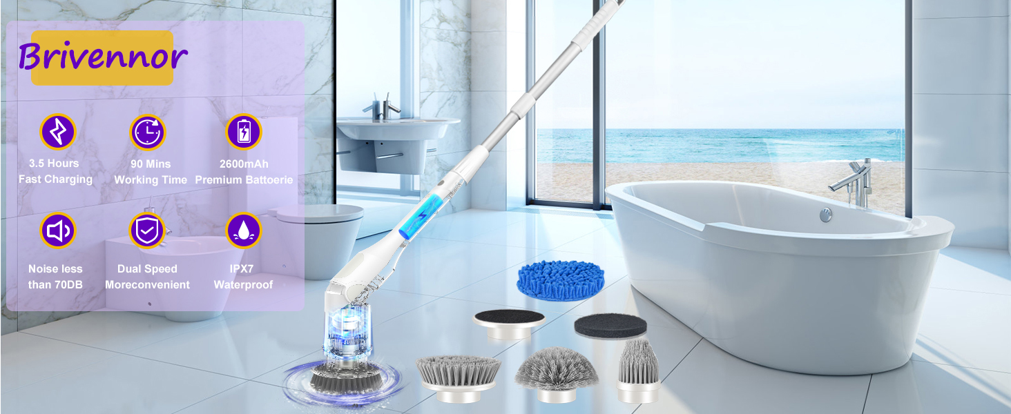 💧{𝐈𝐏𝐗𝟕 𝐖𝐀𝐓𝐄𝐑𝐏𝐑𝐎𝐎𝐅 & 𝐀𝐃𝐕𝐀𝐍𝐂𝐄𝐃 𝐁𝐀𝐓𝐓𝐄𝐑 𝐘}: يقوم منظف الدش الكهربائي بترقية IPX44 الأصلي المقاوم للماء إلى IPX7، ويتم تحسين تأثير الختم بشكل كبير! التعامل مع الرطوبة والمياه الراكدة لا مزيد من القلق بشأن خلل جهاز الغسيل الدوار الخاص بك بسبب دخول الماء! توفر بطارية Power الكهربائية المتميزة بقدرة 2600 مللي أمبير في الساعة ما يصل إلى 90 دقيقة من تنظيف المنزل بالكامل خلال 3 ساعات فقط من الشحن.