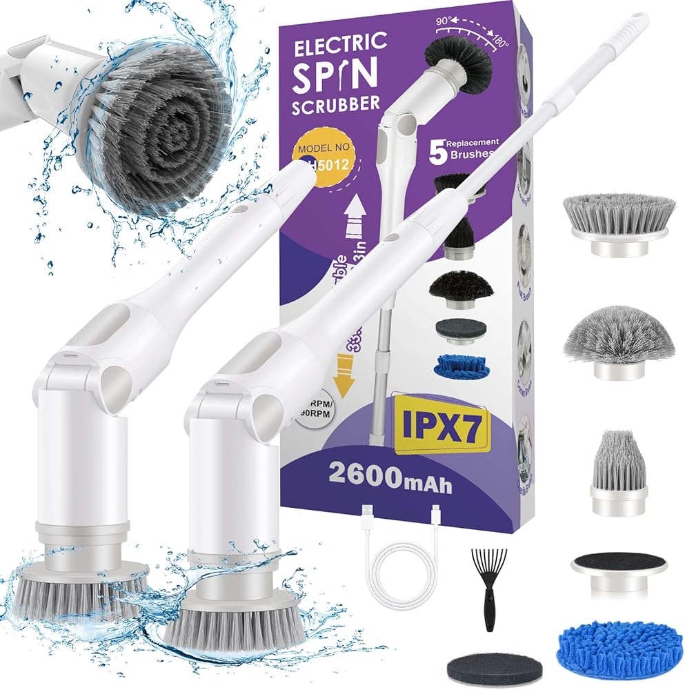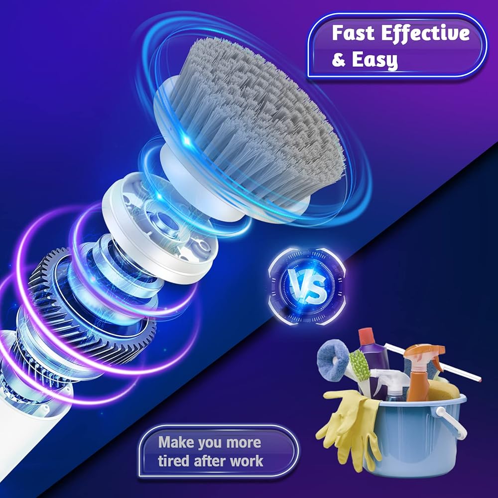 �� 𝐃𝐒}: فرشاة التنظيف الكهربائية متعددة الوظائف مزودة بـ 5 رؤوس فرشاة تنظيف قابلة للاستبدال لتلبية احتياجات بيئات التنظيف المختلفة، مثل الحمامات وأحواض الاستحمام والأرضيات والجص والمواقد وعجلات السيارات والنوافذ، شوايات الشواء، إلخ. الشعيرات مصنوعة من مادة البولي كربونات الصلبة، والتي يمكنها إزالة البقع بشكل فعال وسهلة التنظيف.