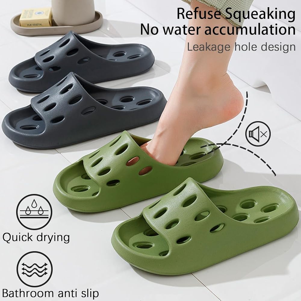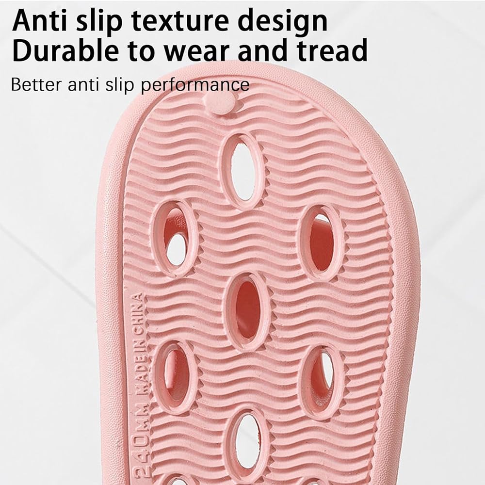 غير قابل للانزلاق: يوفر النعل المضاد للانزلاق قبضة ممتازة على الأسطح الرطبة، ويمنع الانزلاق والسقوط. هذه الشباشب مثالية للاستخدام أثناء الاستحمام أو على أرضيات الحمام الزلقة أو حول منطقة حمام السباحة.