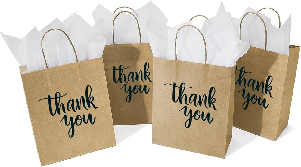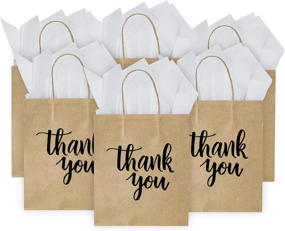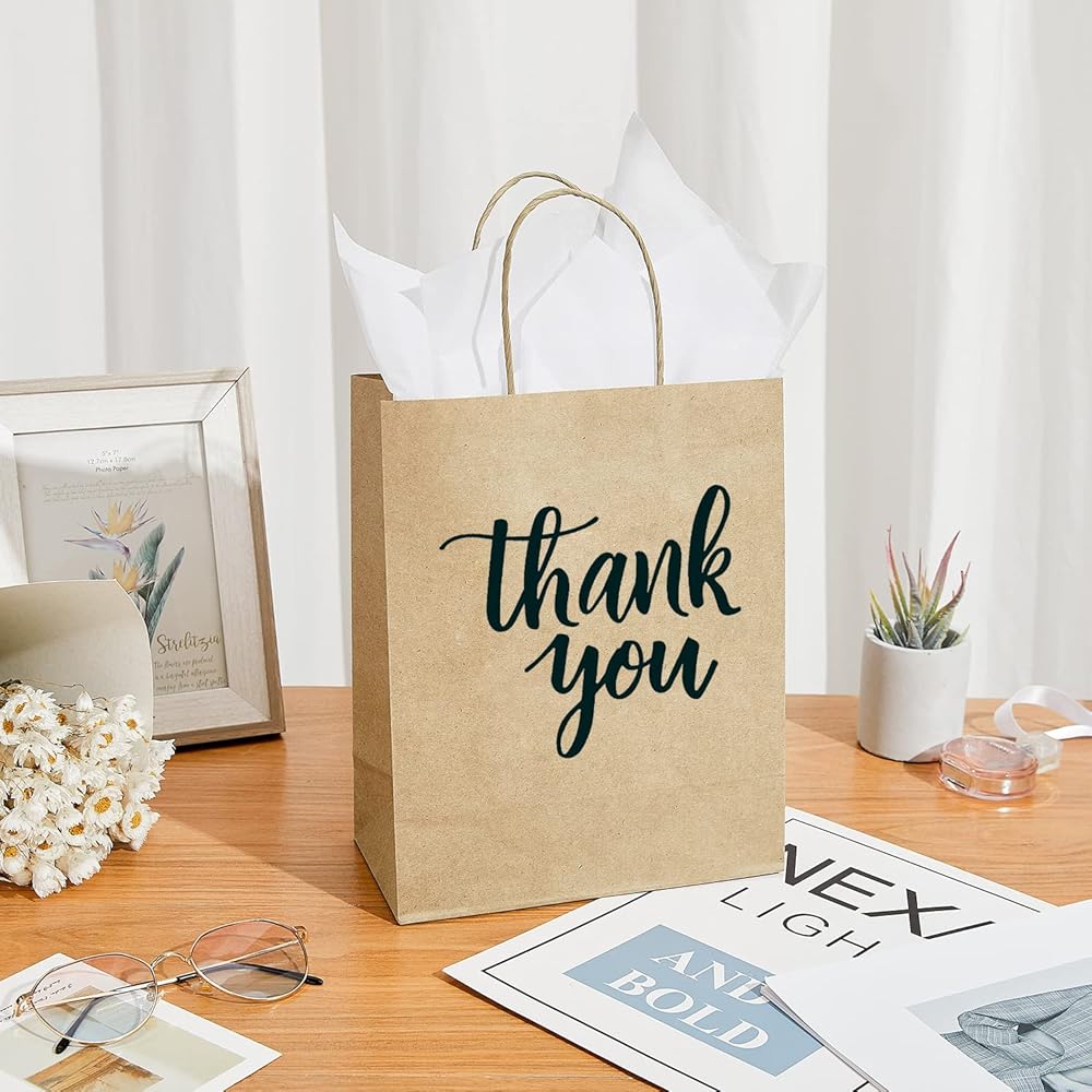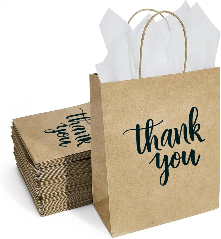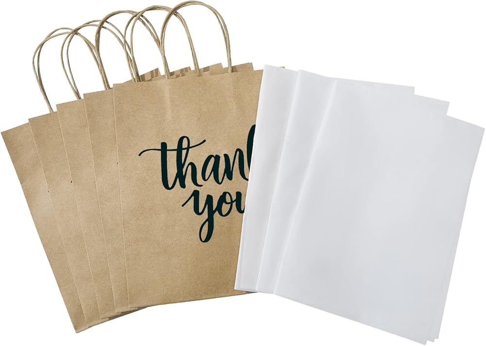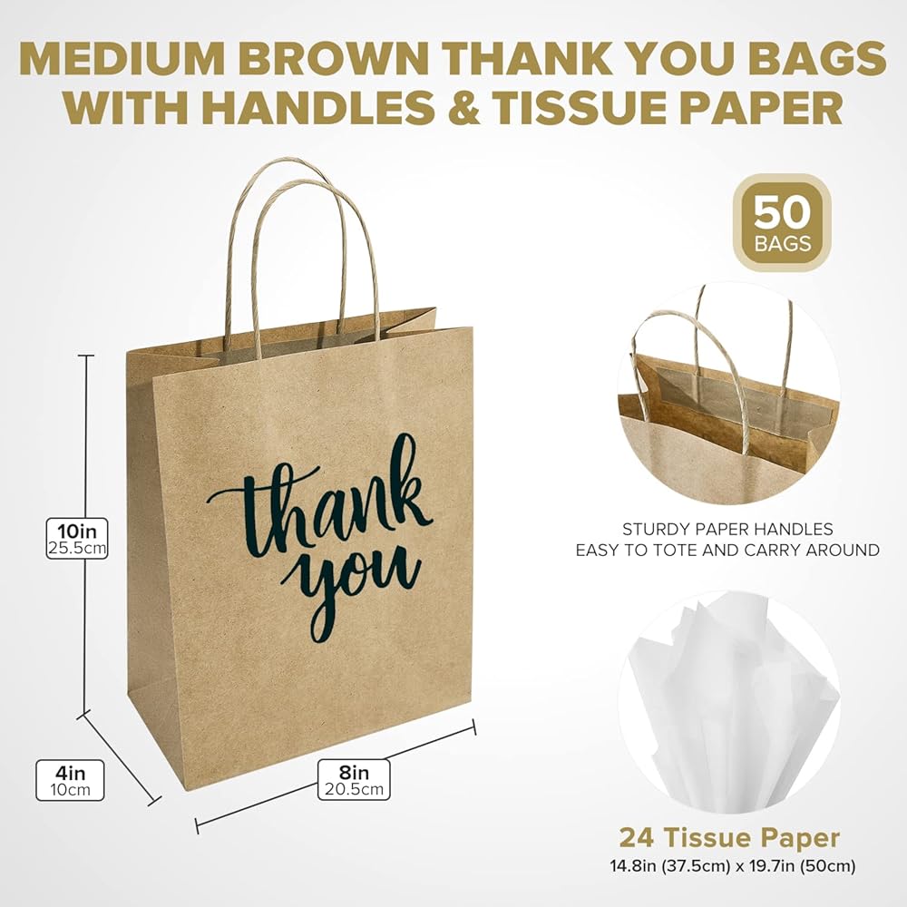 ما يتضمن: في كل مجموعة قيمة كبيرة، سوف تحصل على 50 قطعة متوسطة الحجم باللون الأزرق الداكن شكرًا لك أكياس ورقية بمقابض و24 ورقة مناديل ورقية بيضاء