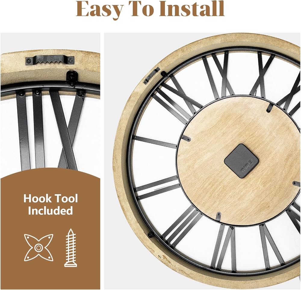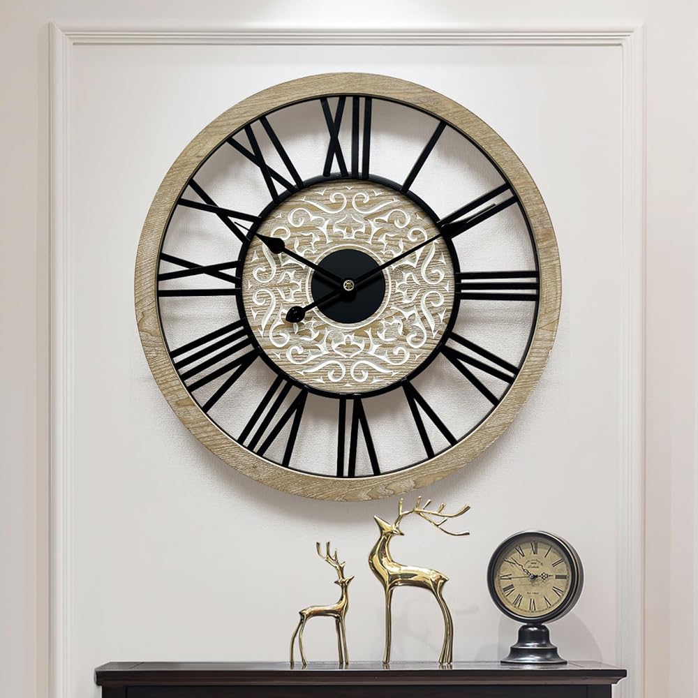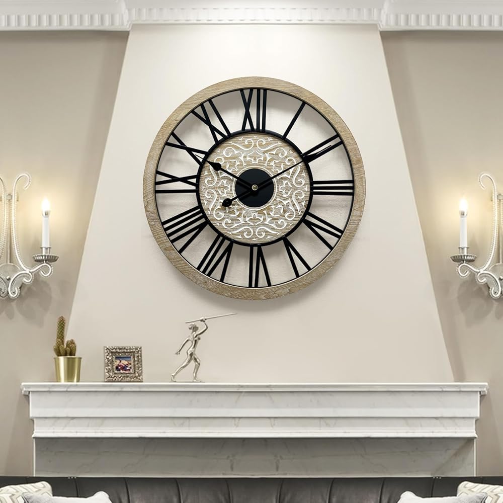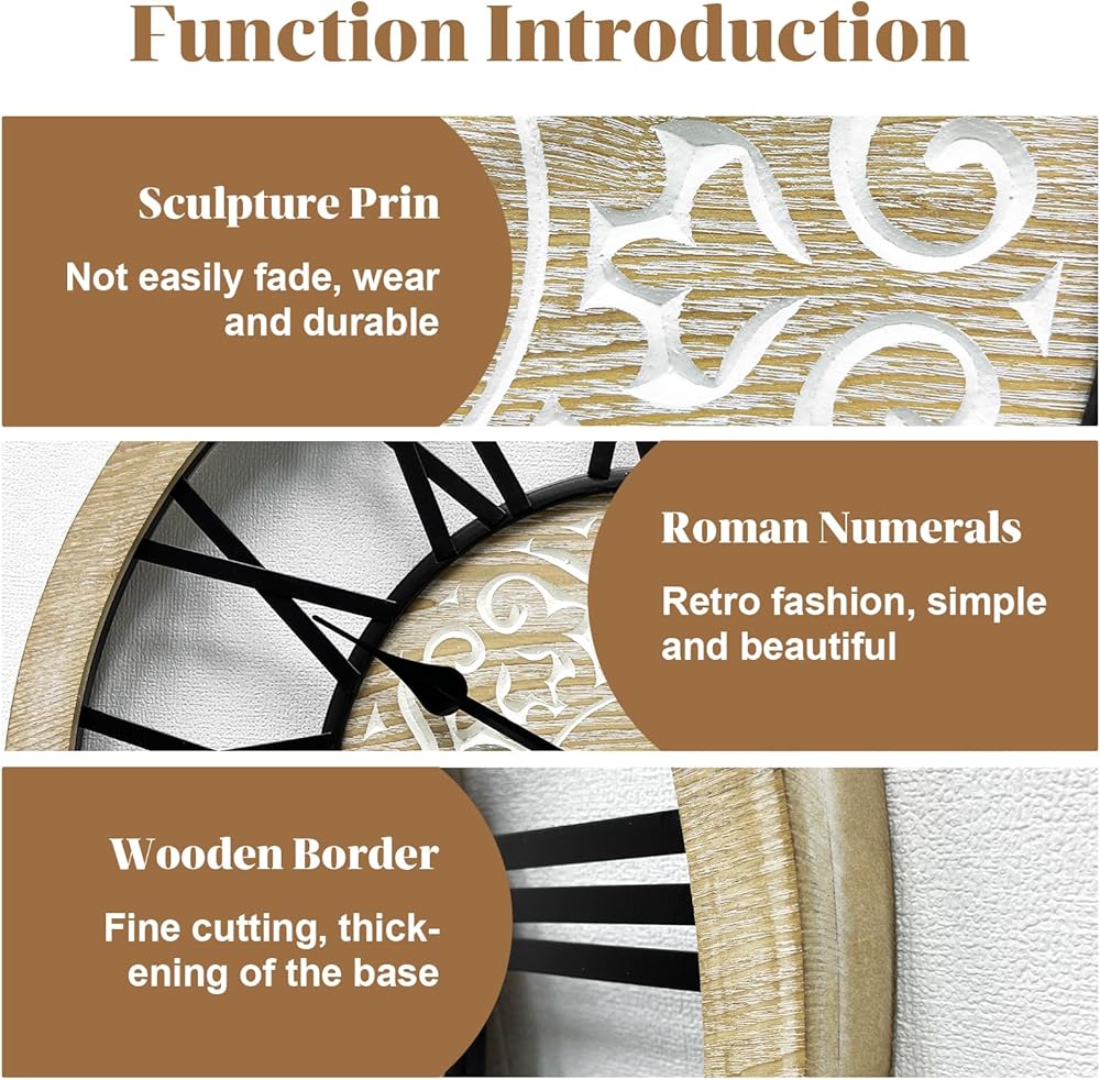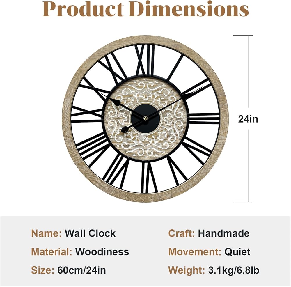 • 【حجم ساعة الحائط 】- 24 بوصة. ساعة الحائط الريفية هذه ليست فقط وجهًا منحوتًا يدويًا، ولكنها أيضًا مصنوعة من خشب عالي الجودة قوي وأنيق. يمكنها إضافة ديكور جميل ونمط طبيعي إلى العديد من المناطق.