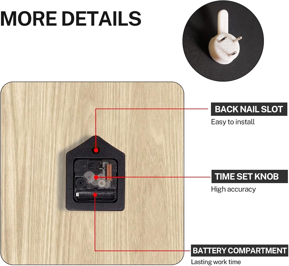 • صامت - حركة المسح الصامتة عالية الجودة تحافظ على الوقت الدقيق وبيئة صامتة تمامًا في النهار والليل، تعمل البطارية باستخدام بطارية زنك كربون AA واحدة (غير متضمنة).