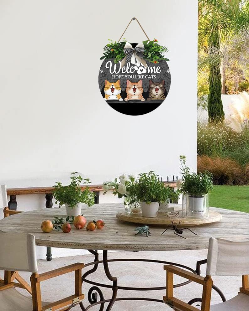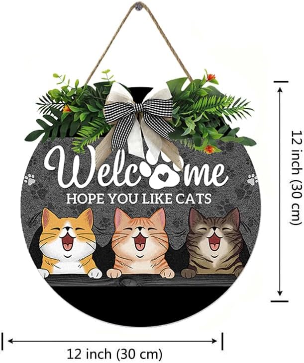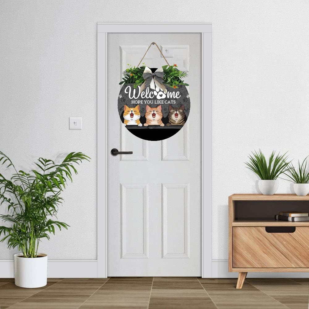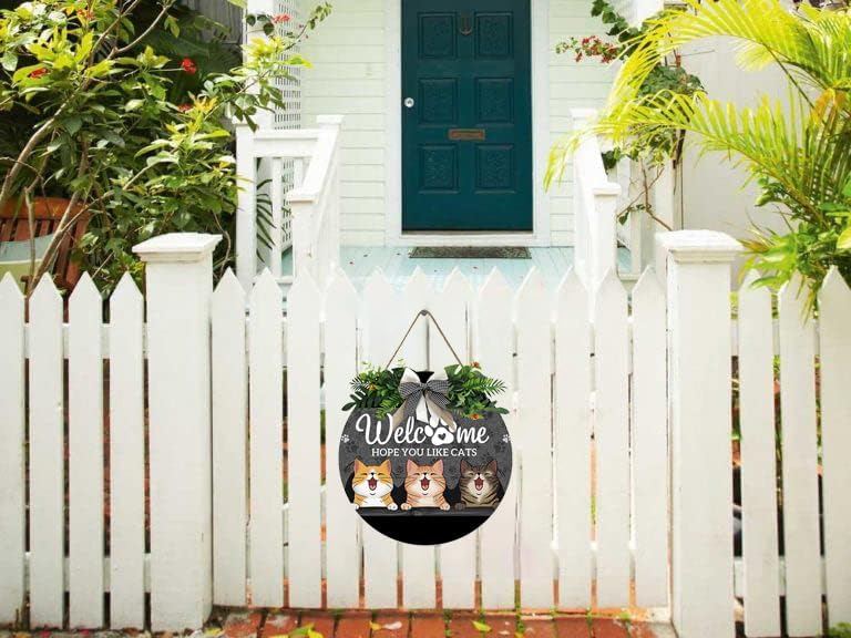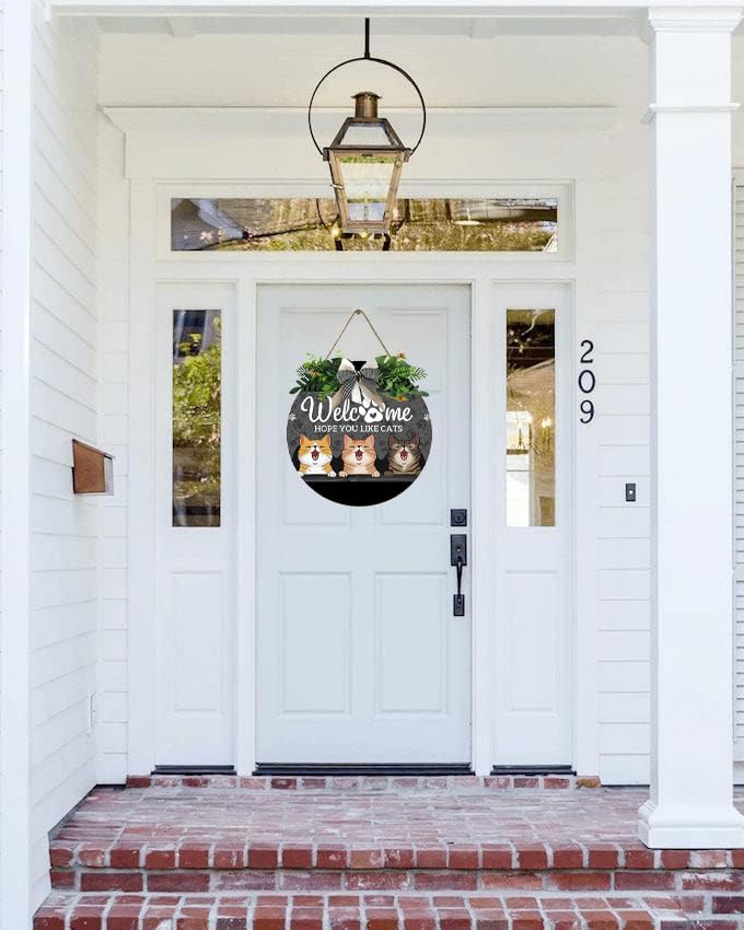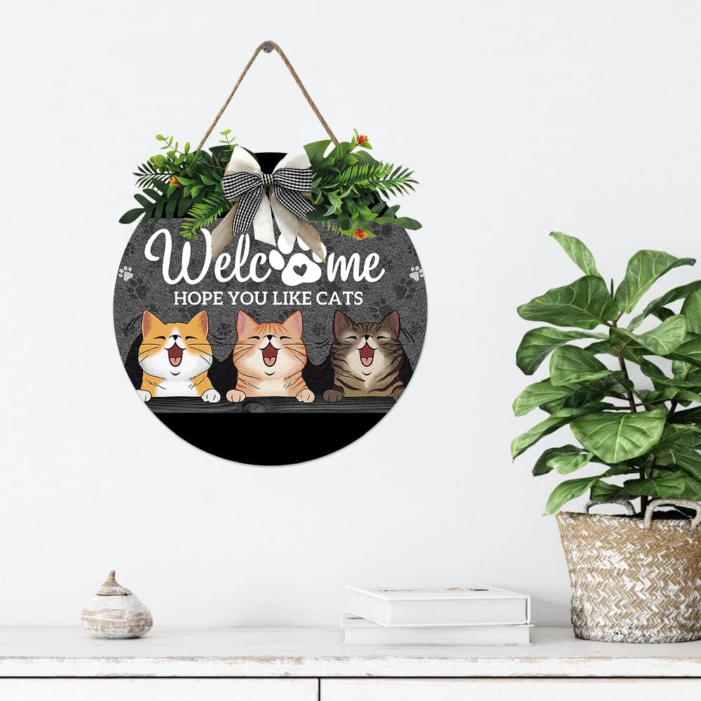 آمل أن تحب القطط - لافتة الباب الأمامي، أكاليل مضحكة معلقة لتزيين لوحة خشبية - ديكور شرفة مزرعة ريفية مستديرة مقاس 12 × 12 بوصة