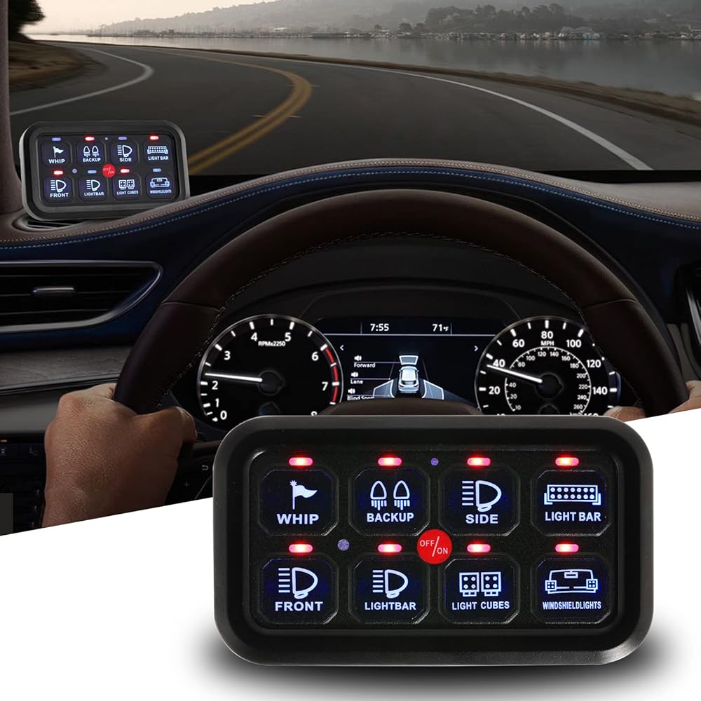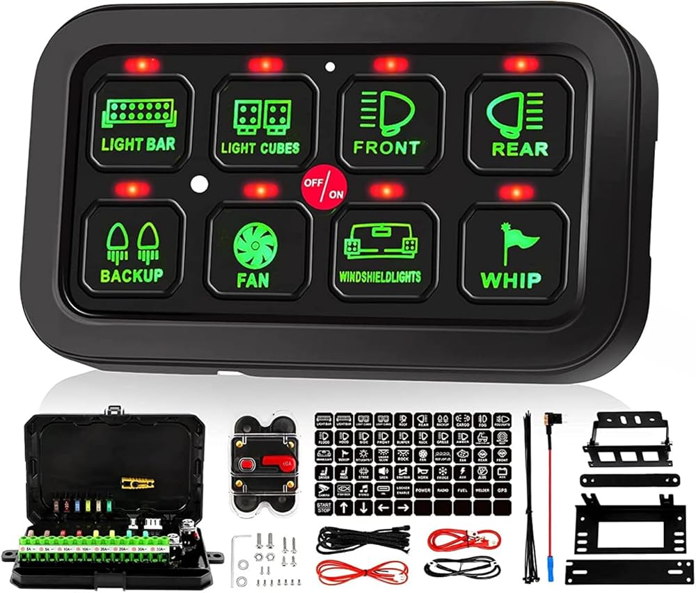 8 عصابة نظام لوحة التبديل نظام تتابع التحكم في الدائرة نظام أسلاك الصمامات التلقائي عكس الضوء على إيقاف تشغيل LED جراب التبديل لـ 12 فولت سيارات شاحنات تخييم سيارات الدفع الرباعي، ضمان لمدة عامين ZJWAQH