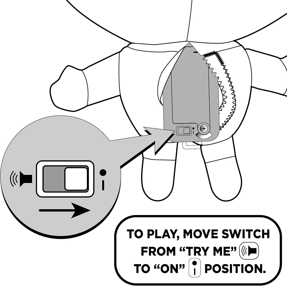 To place the toy into standard play mode, move switch from “Try Me” to “On” position