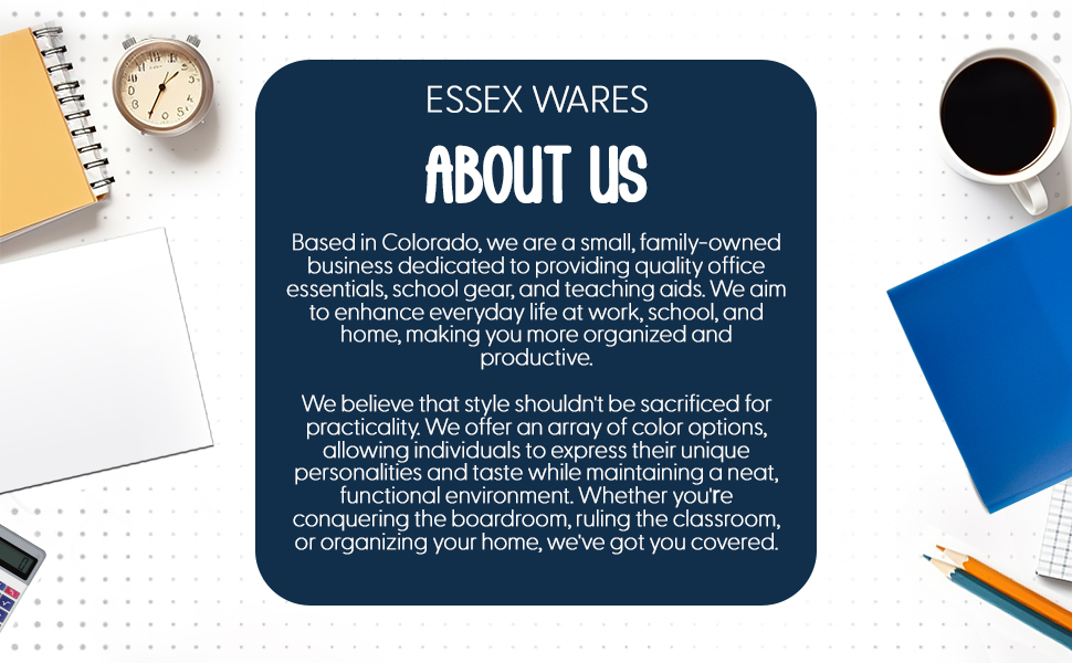 • احصل على المزيد مع Essex Wares - أكثر من مجرد علامات تبويب مرجعية لاصقة، يمكنك استكشاف عالم من الأساسيات مع Essex Wares. بدءًا من الأدوات التعليمية وحتى الأدوات التنظيمية الضرورية، فإننا نقدم لك التغطية اللازمة لحياة أفضل