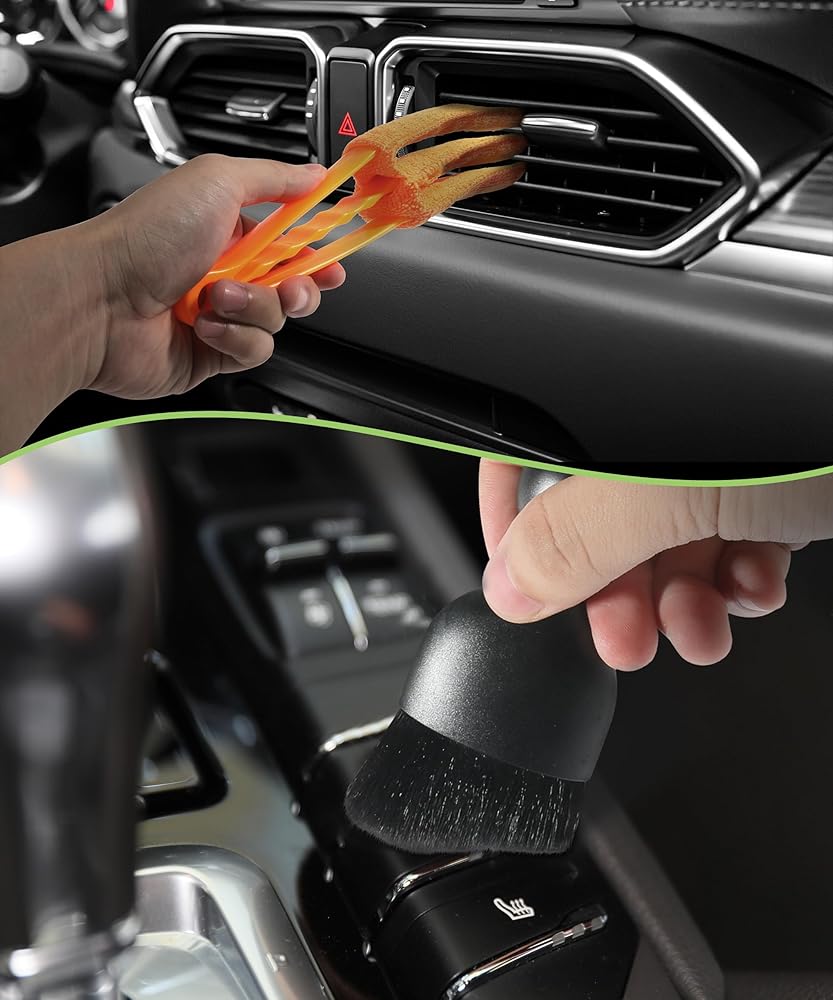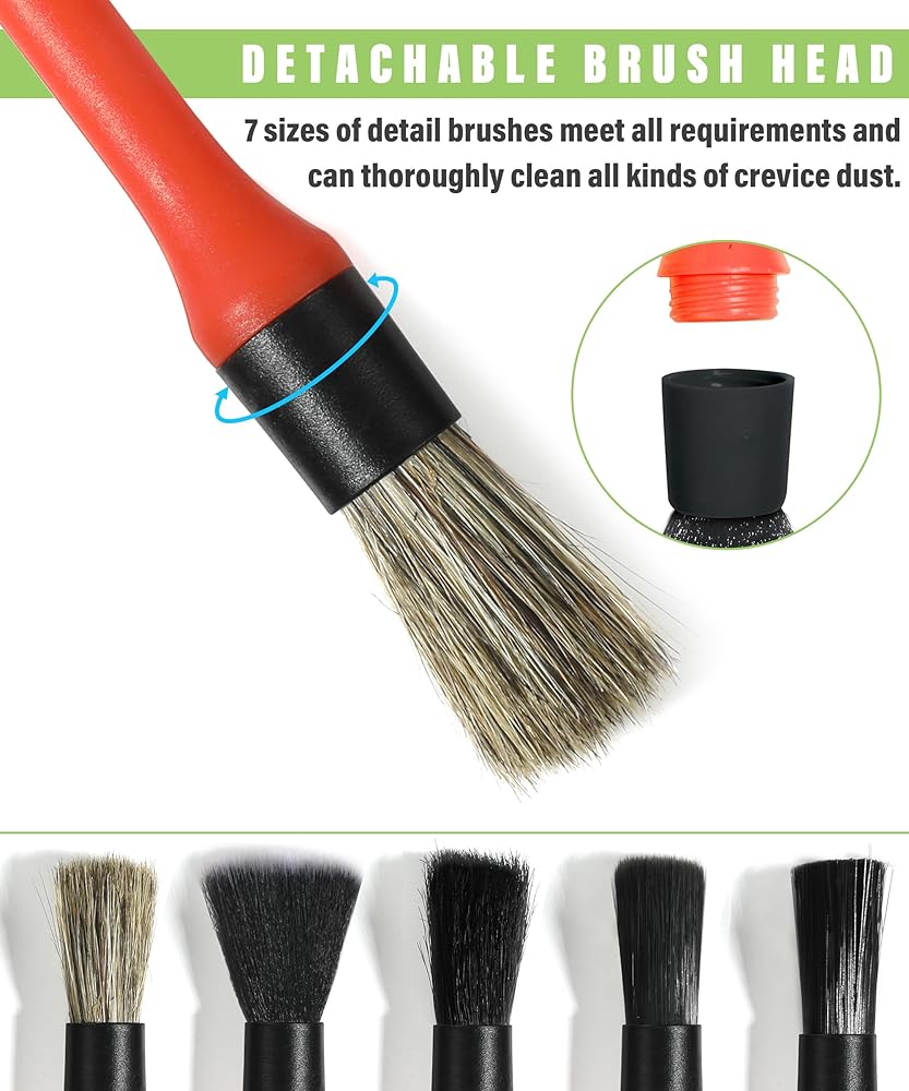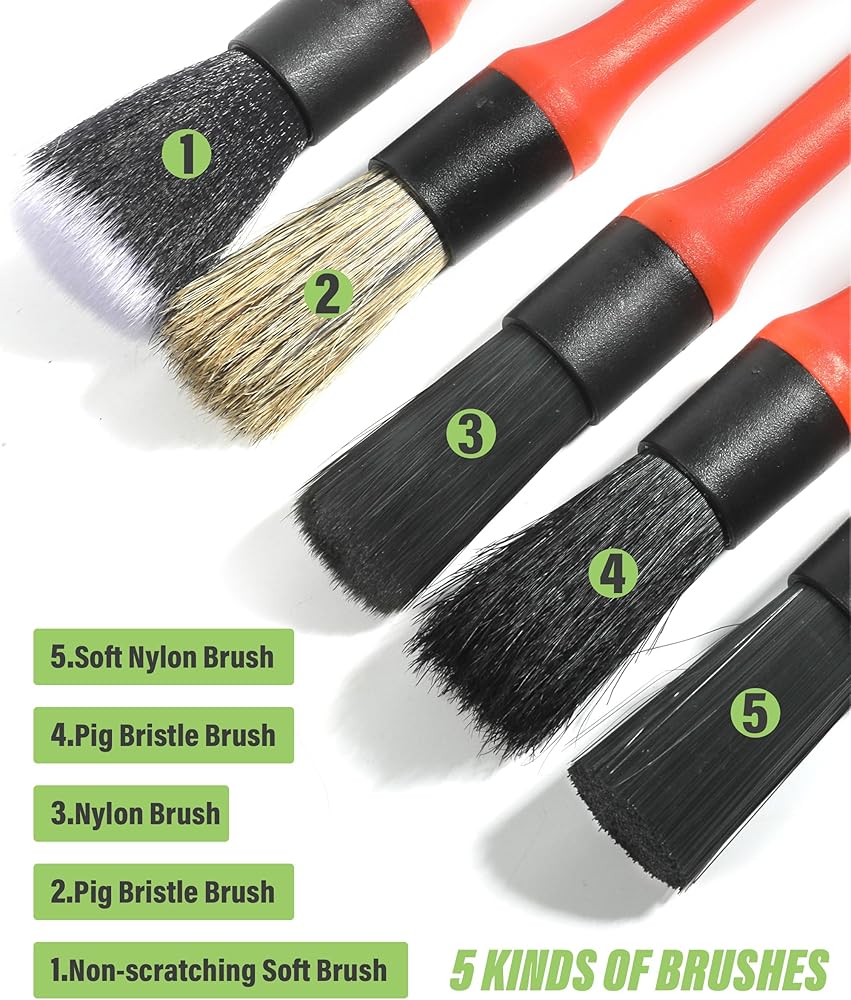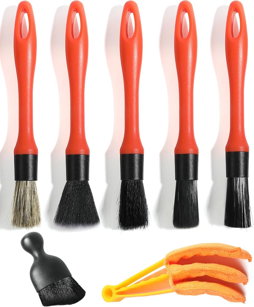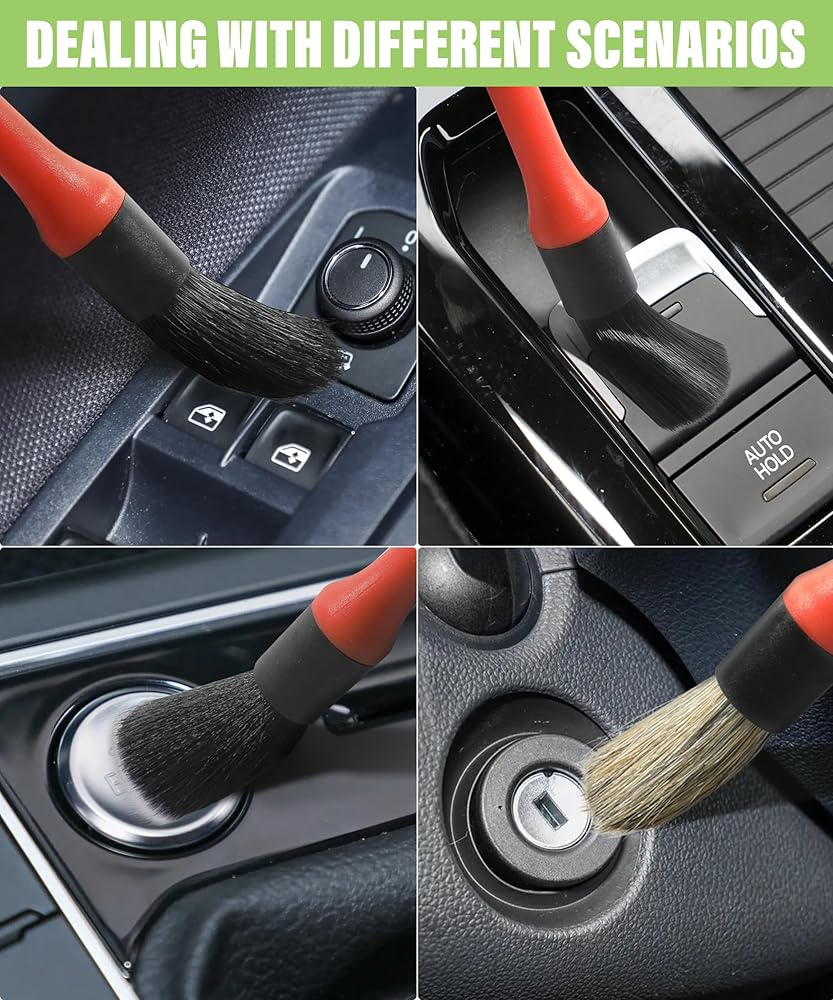[Set Includes]The set includes 5 car detail brushes, 1 curved car interior cleaning brush, and 1 ventilation brush. You can choose any one to meet your needs.