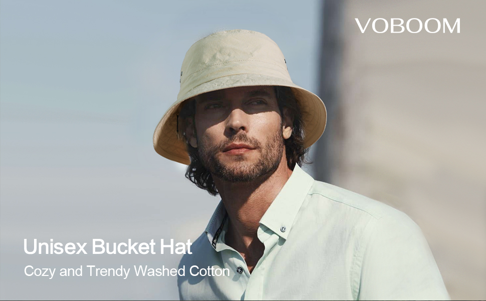 قبعة دلو من القطن المغسول للرجال من VOBOOM، قبعة Boonie قابلة للتعبئة للحماية من الشمس (أبيض)