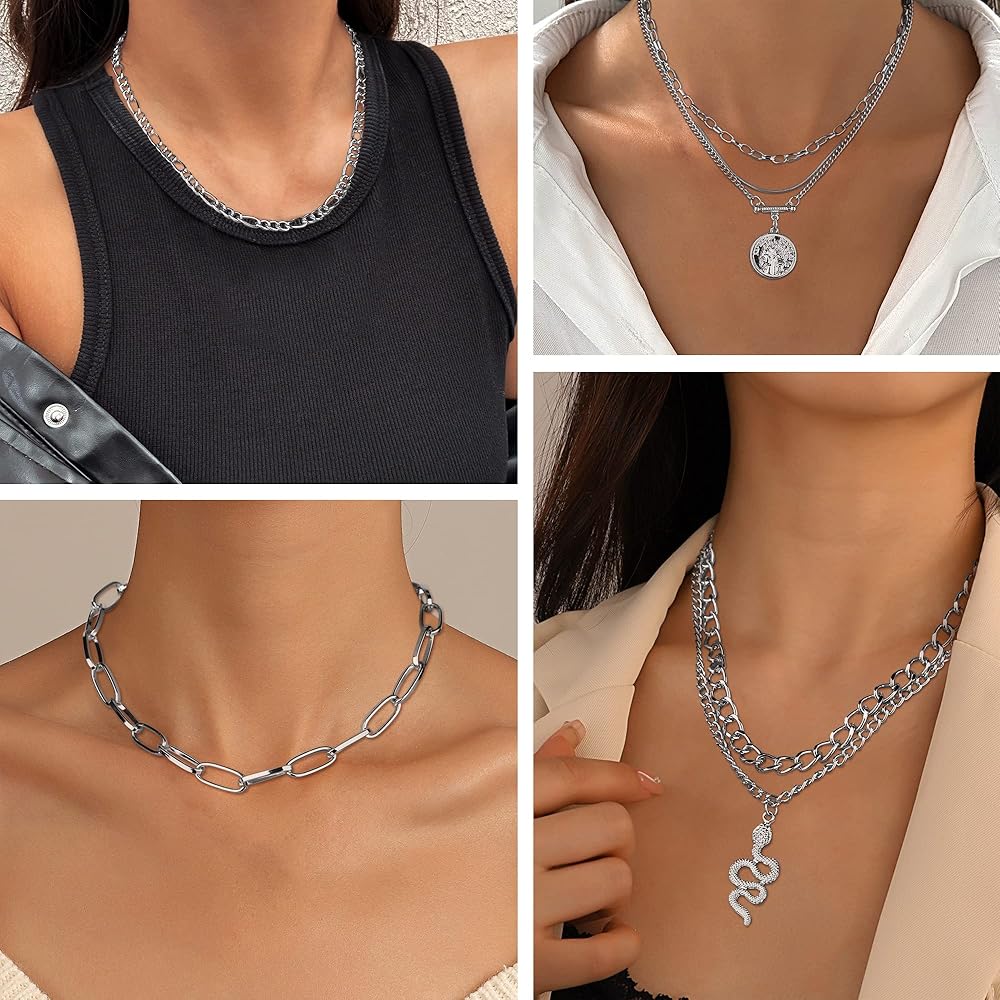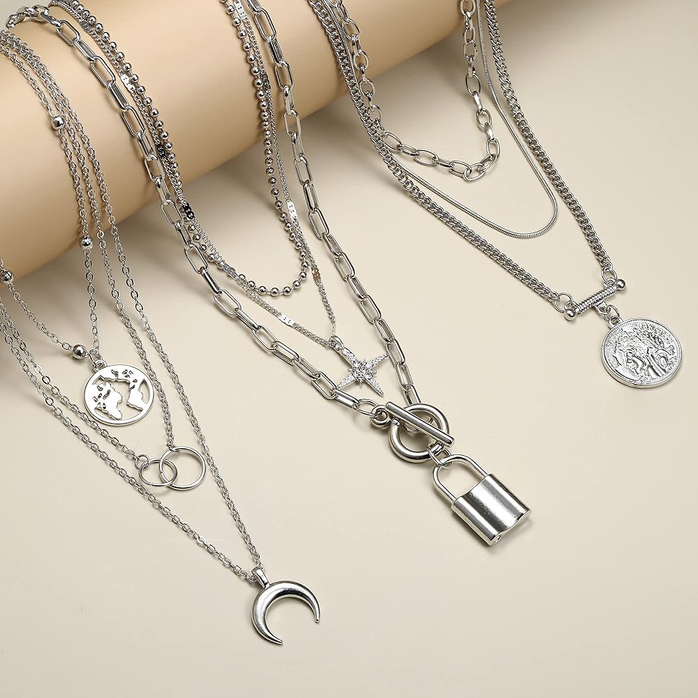 • قلادة فضية للنساء: سواء كنت تتأنق لمناسبة خاصة أو تريد ببساطة إضافة بعض التألق إلى مظهرك اليومي، فإن طقم القلادة ذو الطبقات الفضية هذا هو الإكسسوار المثالي. بفضل تصميمه الأنيق وبنيته عالية الجودة، من المؤكد أن يصبح المفضل في مجموعة مجوهراتك.