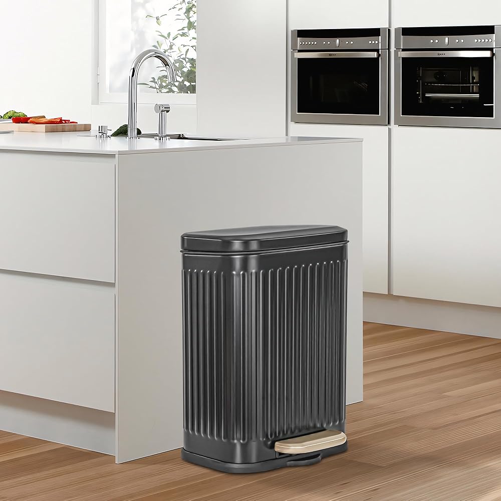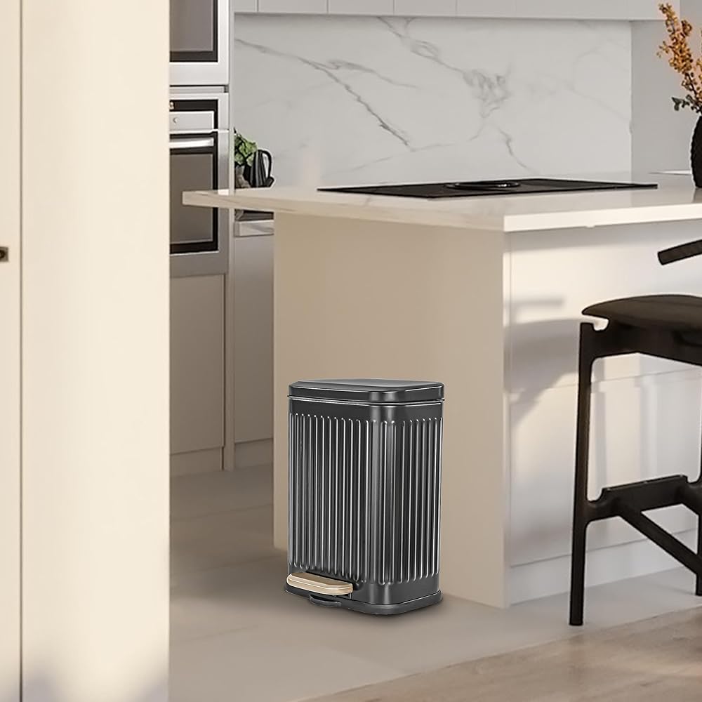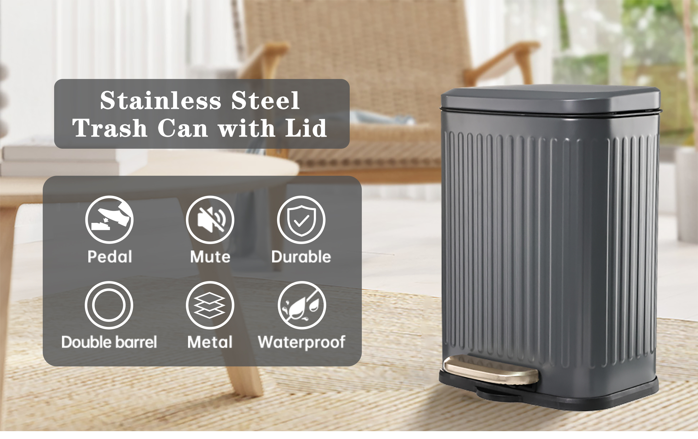 غطاء ناعم الإغلاق ويبقى مفتوحًا - يمكن لقمامة الحمام ذات اللون الرمادي غير اللامع أن تحرر يديك، ويفتح الغطاء ويغلق بسلاسة وصمت بضغطة على الدواسة بهدوء مثل قلب الكتاب، لا تقلق بشأن إزعاج بقية أفراد عائلتك . قم بتثبيت الغطاء عند 90 درجة ليظل مفتوحًا طالما احتجت.