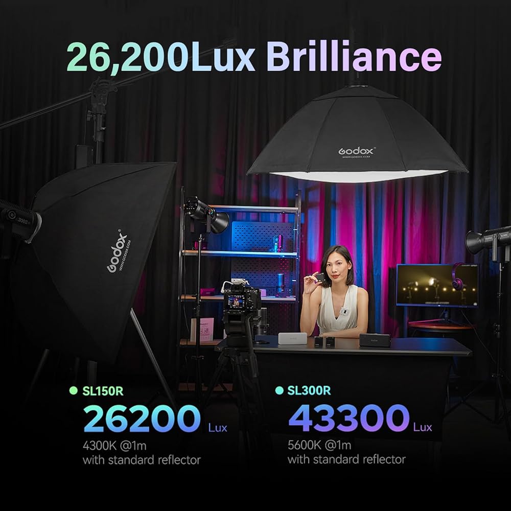 [RGB Video Monolight لمنشئي المحتوى وإنتاج الفيديو] يعد مصباح الفيديو Godox SL300R RGB LED إضافة متعددة الاستخدامات إلى خط Godox's LED monolight، المصمم خصيصًا لمنشئي المحتوى وإنتاج الفيديو.