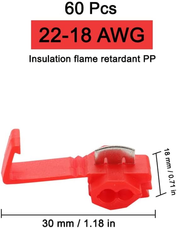 تشتمل العبوة على 60 قطعة من موصلات أسلاك التوصيل السريع، 12-10 AWG (20 قطعة صفراء)، 18-14 AWG (20 قطعة زرقاء)، 22-18 AWG (20 قطعة حمراء)، الكمية يمكن أن تلبي احتياجاتك اليومية المختلفة.