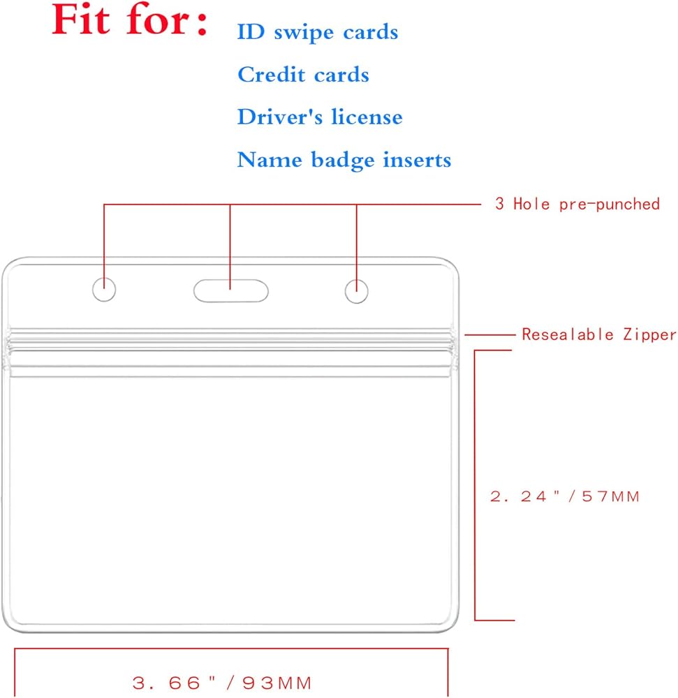 DURABLE and WATERPROOF: The ID holder pouch is made of flexible, clear, waterproof, tear resistant vinyl. The re-sealable holder keeps your tags, credit card, RFID badge, passes or hotel keys safe and dry.