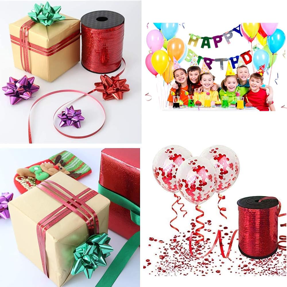 • ★UNIQUE DESIGN-- The red metallic curling ribbon with holographic sparkles design, very shiny and glitter. Good Choice to enhance festivals' and party atmosphere. You can even use these ribbons for fashion! Young girls will love tying these in their hair to themselves look nice.