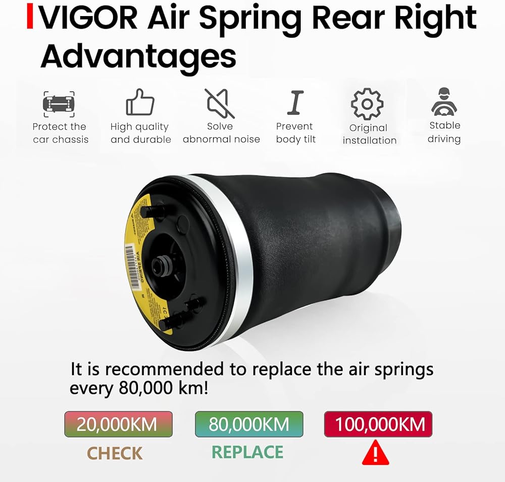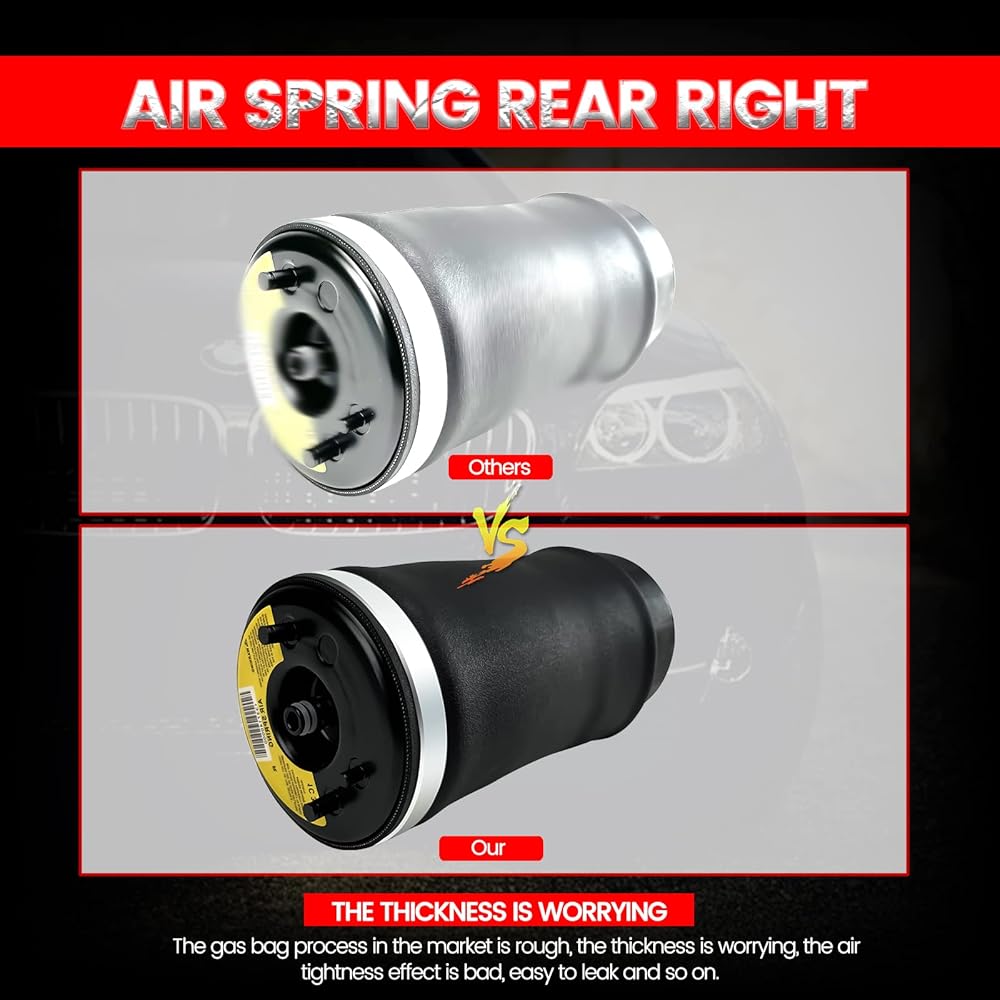 【جودة ممتازة】الرحلة الهوائية مصنوعة من مطاط مستورد عالي الكثافة، وأكثر متانة وأداء تحميل أفضل من تعليق الهواء العادي، مما يوفر لك تجربة قيادة أفضل بعد الاستبدال.