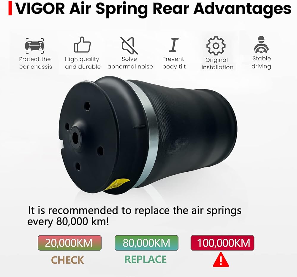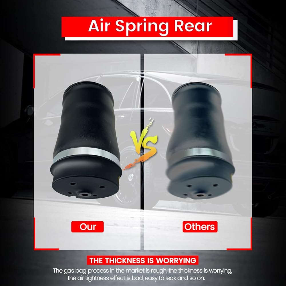 【جودة ممتازة】الرحلة الهوائية مصنوعة من مطاط مستورد عالي الكثافة، وأكثر متانة وأداء تحميل أفضل من تعليق الهواء العادي، مما يوفر لك تجربة قيادة أفضل بعد الاستبدال.