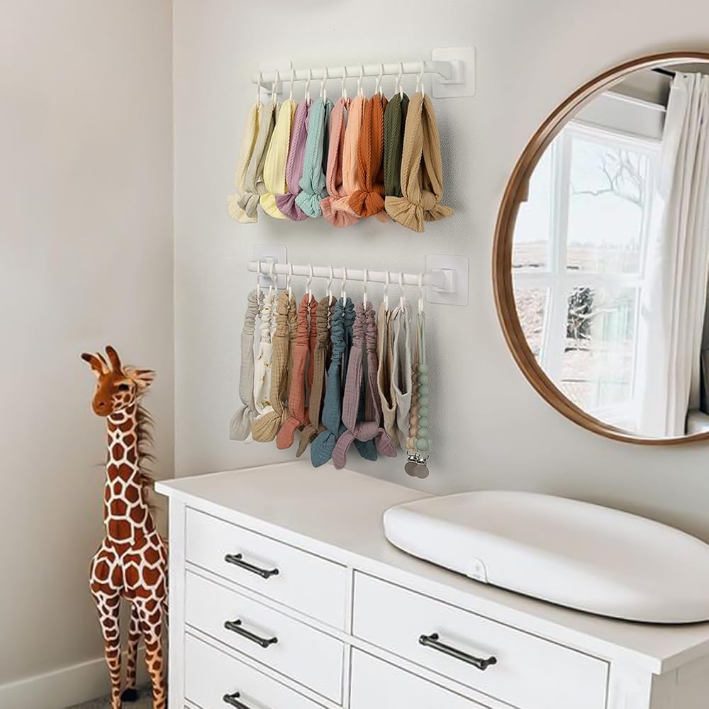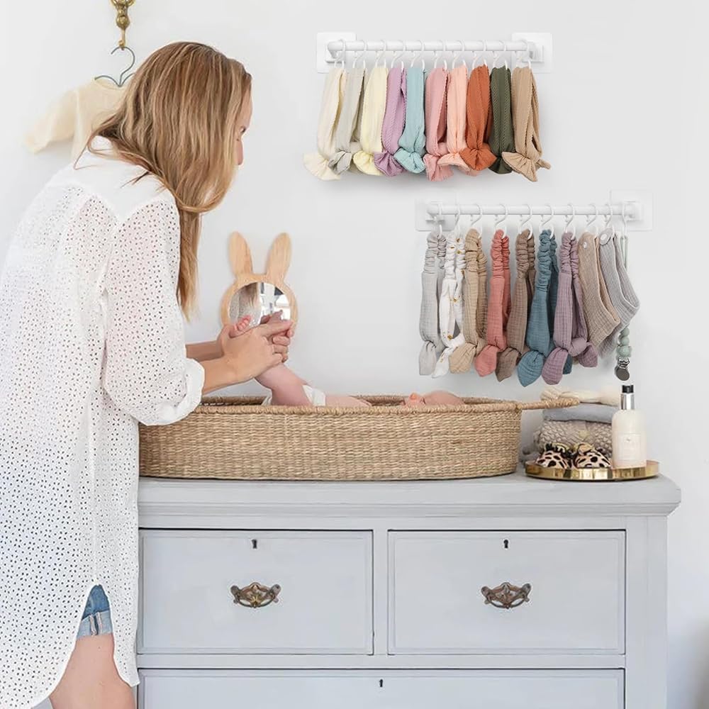 حامل عصابة رأس POVETIRE، تخزين منظم عصابة رأس الطفل، عصابات الرأس، إكسسوارات الشعر، حامل مصاصة، حامل مرايل الطفل، ديكور جداري لغرفة الأطفال حديثي الولادة والفتيات