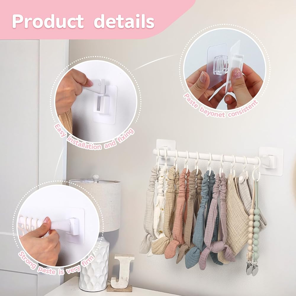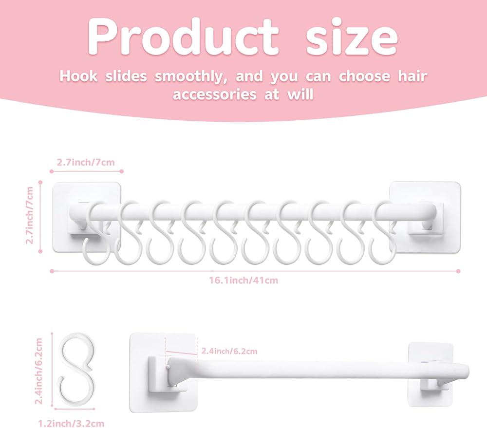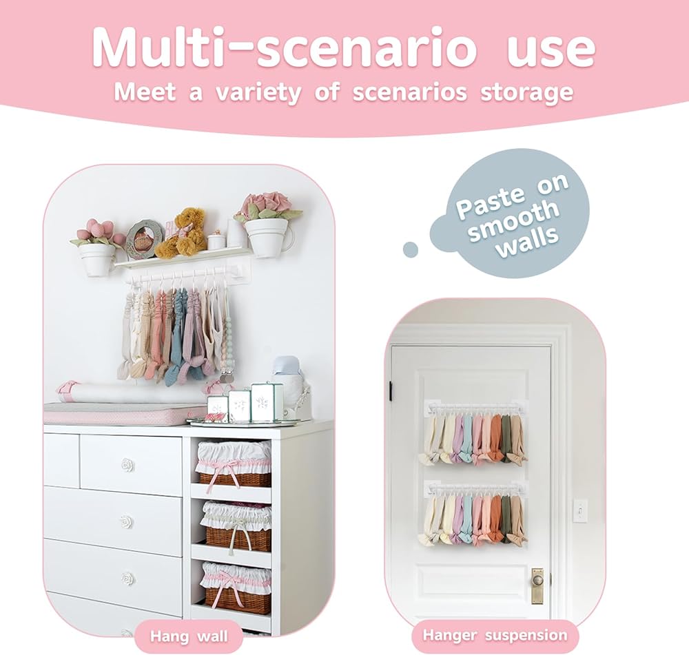 • تصميم مبتكر: يوفر حامل عصابة الرأس طريقة أسهل للتركيب، ويمكن استخدام لصق الخطاف على الجدار الأملس على الفور، دون إحداث ضرر على الحائط، كما أن سطح رف تخزين عصابة الرأس أكثر سلاسة، ويمكن أن ينزلق الخطاف إلى اليسار واليمين. لتتمكني من اختيار عصابة الرأس أو إكسسوارات الطفل المناسبة لهذا اليوم بسهولة.
