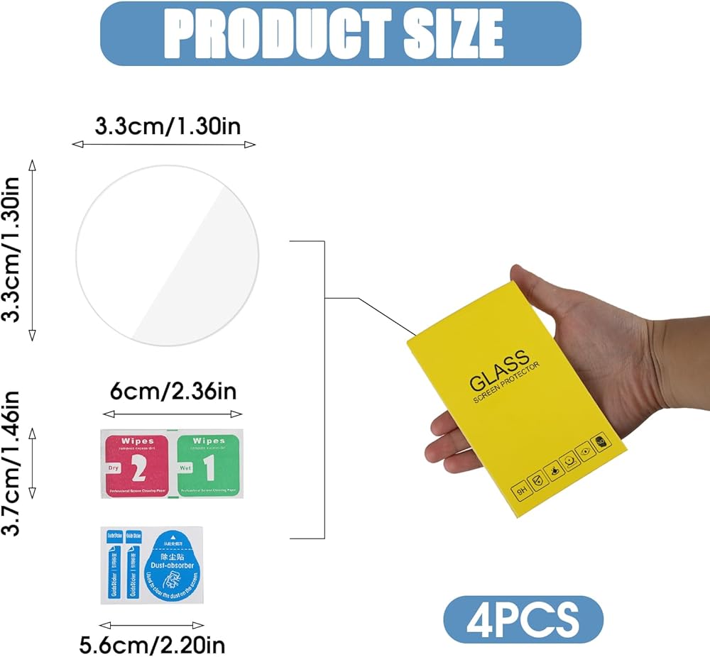 【Complete Package】 4 x Tempered glass screen protector and foam bag, 4x alcohol packs and wipes. This smartwatch screen protector have superior adsorption and exhaust properties, and the film is automatically adsorbed and easy to install.