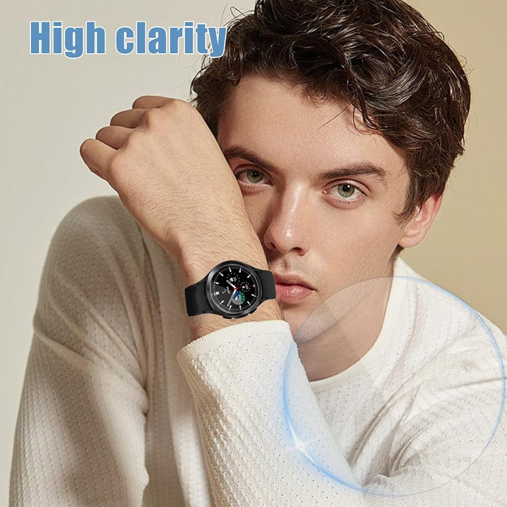 【Coverage Protection】Precise cutting technology make the protective film perfectly cover the corners and edges of the Samsung Galaxy Watch 4 Classic 42mm, the protector will not easily warp or even fall off, let you free running, swimming and all sports.