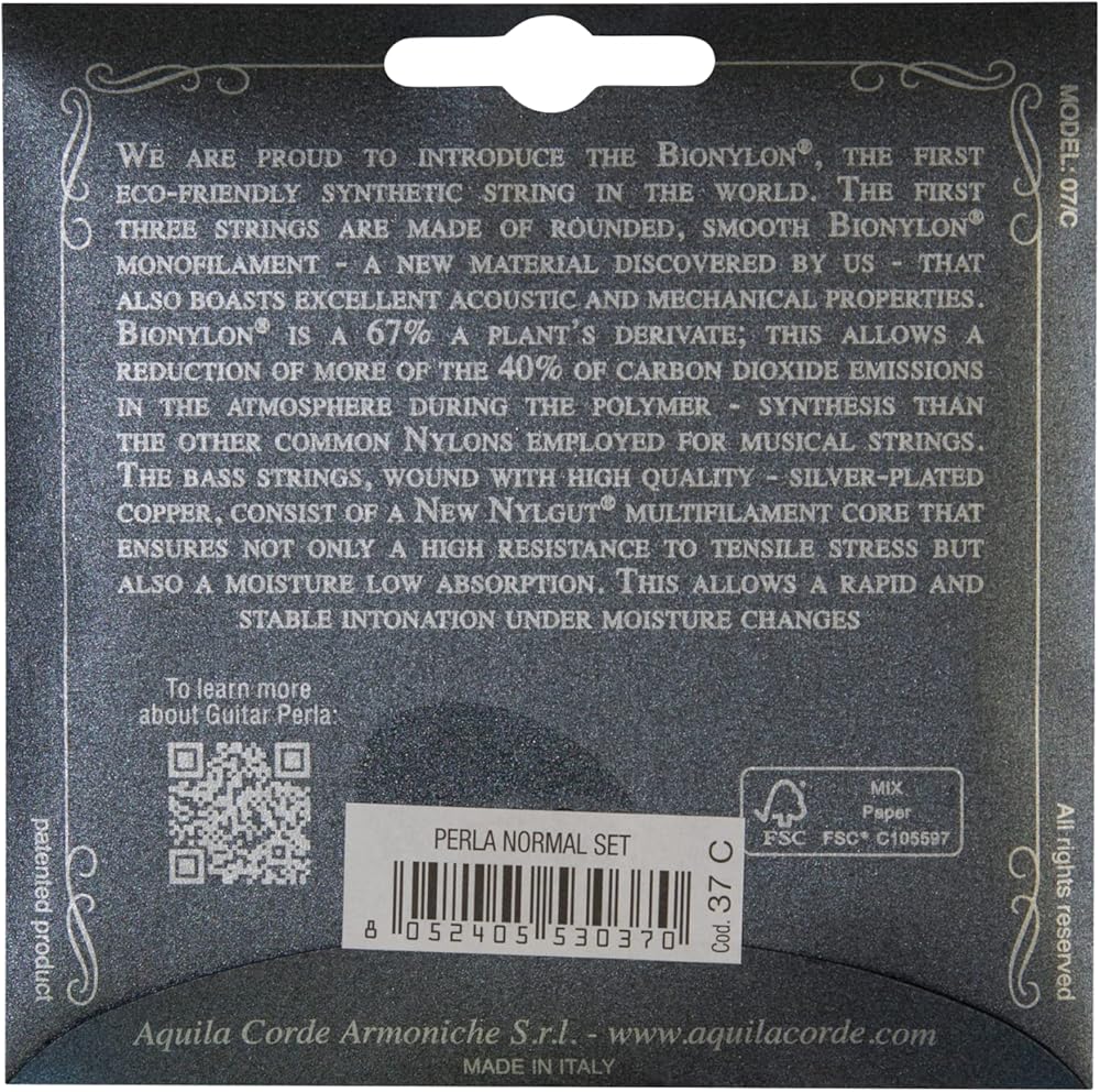 مجموعة / جيتار كلاسيكي عادي الشد تريبلز: بيونيلون بي: نواة جديدة متعددة الشعيرات من نايلغوت / أوتار وونبيرلا مطلية بالفضة - مجموعة تقليدية تقدم مستويات عالية من الأداء. الأوتار ثيتريبل مصنوعة من بيونيلون، ثم مادة صناعية صديقة للبيئة. هذه الأوتار مصنوعة من خيوط بيونيلون أحادية دائرية وناعمة - وهي مادة جديدة تتميز بخصائص صوتية وميكانيكية ممتازة. البيونيلون هو مشتق من النبات بنسبة 67-70% (زيت الخروع)؛ وهذا يسمح بتقليل