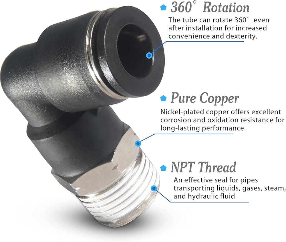 Connetion Type: Push to connect with PU/PA / PE / PVC tubing