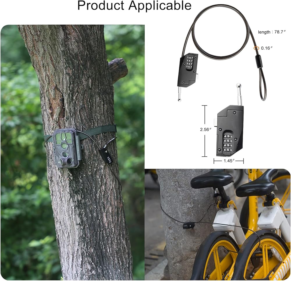 قفل كابل كاميرا الألعاب وكاميرا المسار المقاوم للماء في الهواء الطلق، كابل وحزام قفل كاميرا المسار، كابل قفل مركب لكاميرا صيد الغزلان، لا حاجة إلى مفتاح، 4 أرقام توفر 10000 مجموعة لمزيد من الأمان