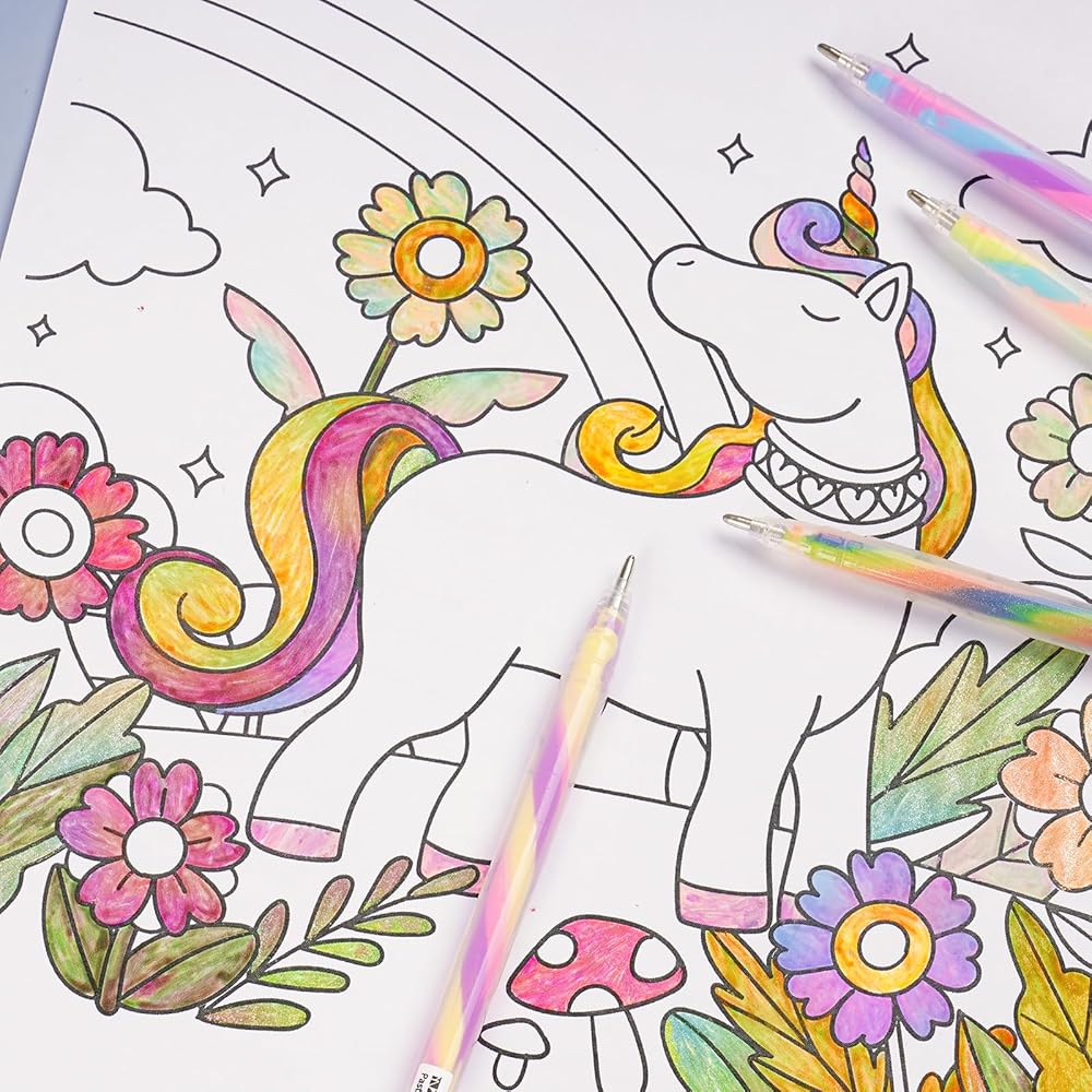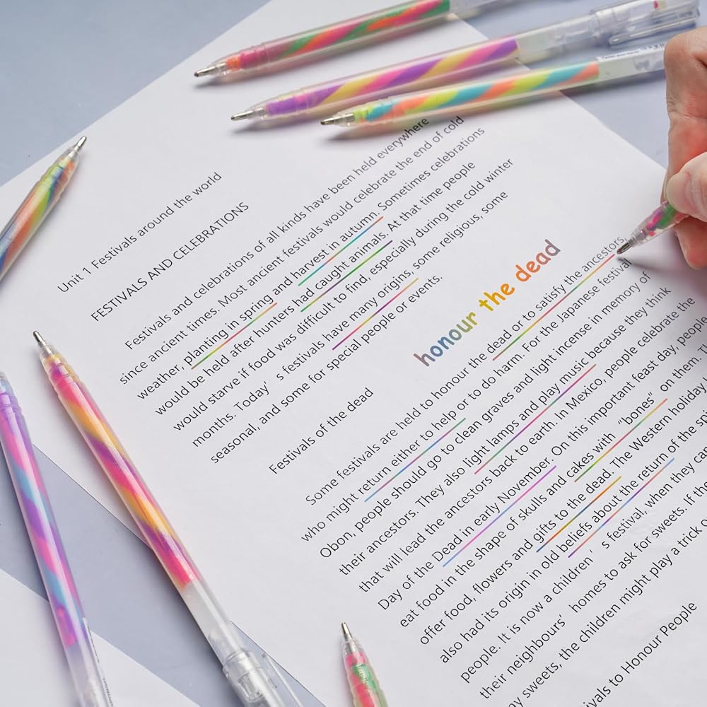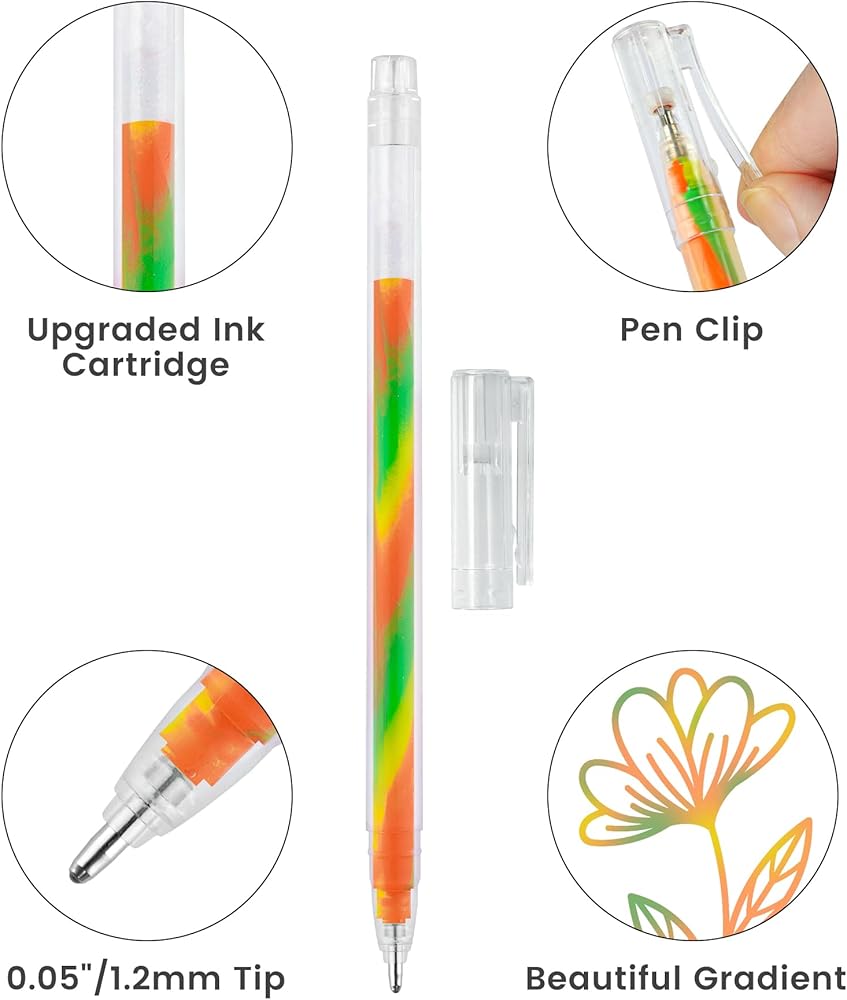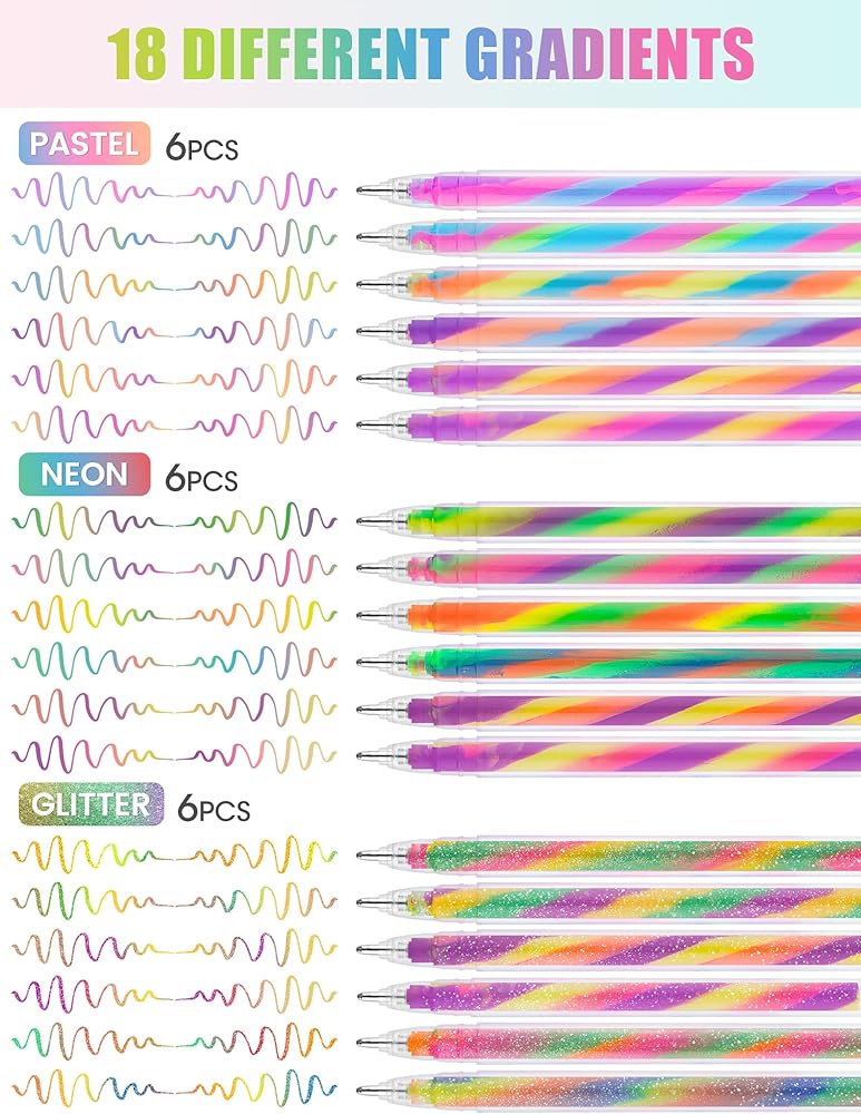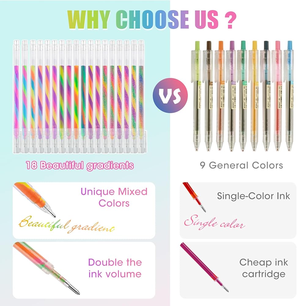 NiArt Spectra Swirl Color-Changing Gel Ink Pen 18 Pack, 1.2mm/0.047'' Fine Round Tip, Transparent Barrel, Vibrant Rainbow Glitter Gradient Neon Pastel Ink for Writing, Drawing, Journaling, Non-Toxic