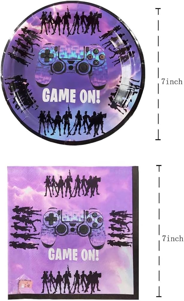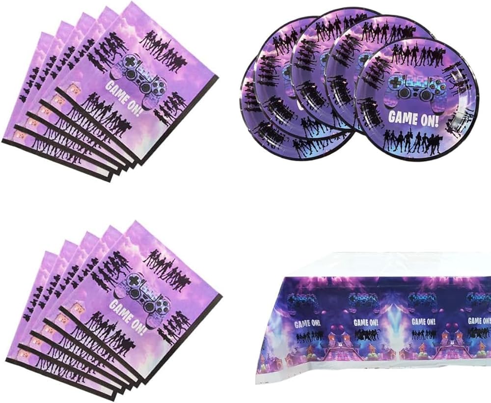 Suitable for: The video game party tableware includes 20 dessert plates, 20 paper napkins, and 1 tablecloth, the design is perfect for this theme party!