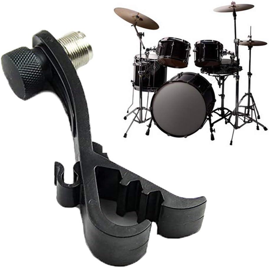 MOFUCA طبلة ميكروفون كليب، ميكروفون طبل جبل قابل للتعديل ميكروفون حامل المشبك حامل ميكروفون موسيقي مقاوم للصدمات لحامل الطبل (أسود)