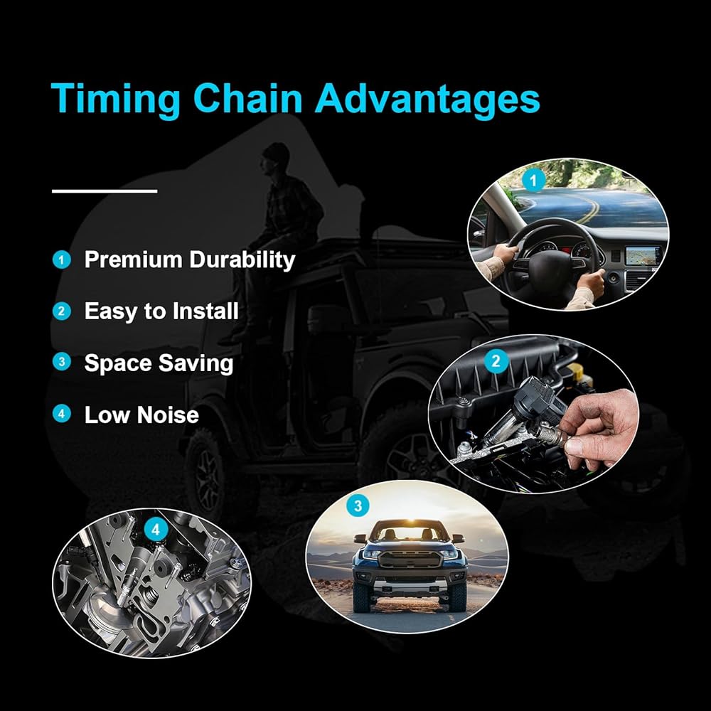【أداء عالي】تم تصميم مجموعة سلسلة التوقيت لتعمل بسلاسة حتى في الظروف الجوية القاسية للغاية. إنه مقاوم لدرجات الحرارة العالية ودرجات الحرارة المنخفضة، ومقاوم للتآكل، وله عمر خدمة طويل.