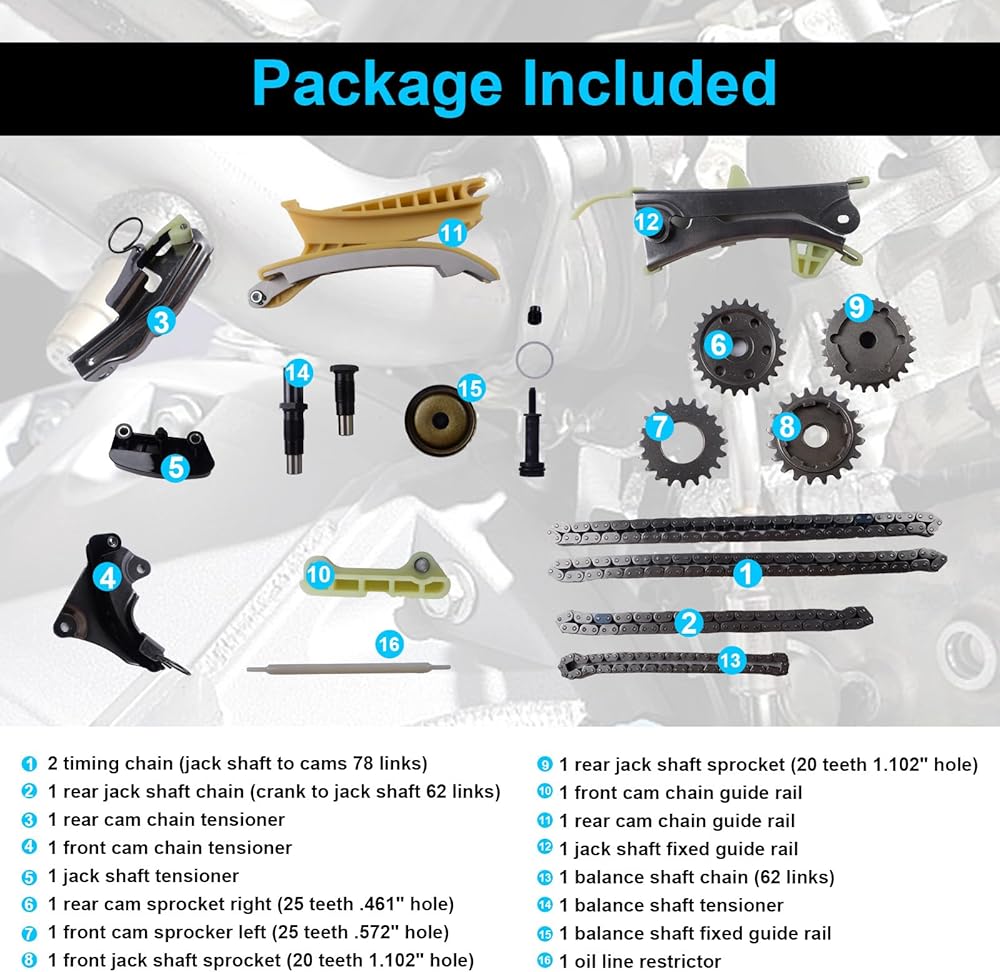 【تصميم متقدم】تتميز مجموعات سلسلة التوقيت لدينا بتصميم متطور وتقنية تقليل الاهتزاز المتطورة، مما يقلل بشكل فعال من الاحتكاك والاهتزاز بين السلسلة والتروس، مما يؤدي إلى تشغيل أكثر سلاسة للمحرك. مع ملاءمة مثالية وسهولة التركيب، يضمن هذا المنتج الأداء الأمثل، مما يجعله بديلاً مباشرًا مثاليًا. فهو يزيد من كفاءة الاحتراق، ويحسن إنتاج الطاقة، ويعزز الاقتصاد في استهلاك الوقود.