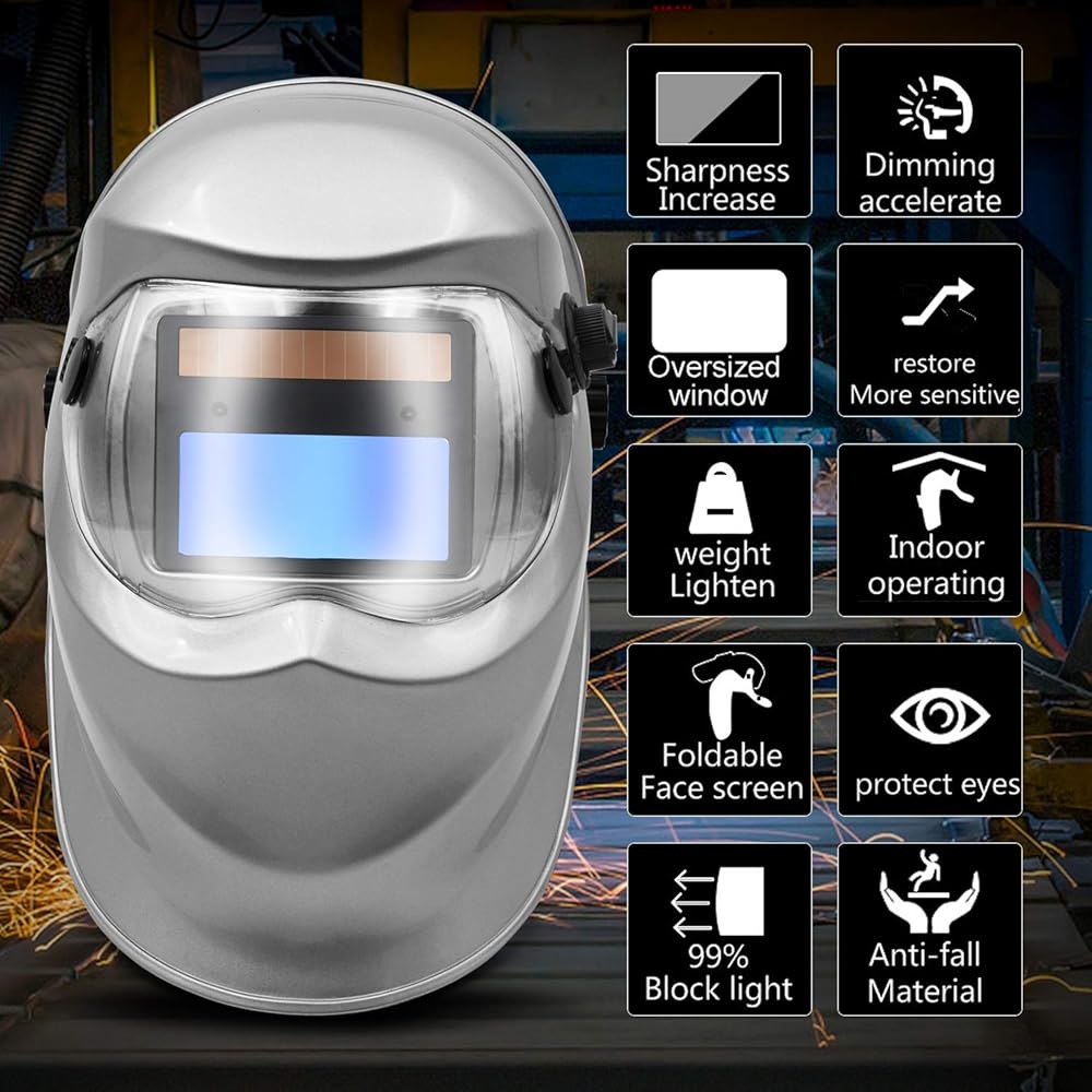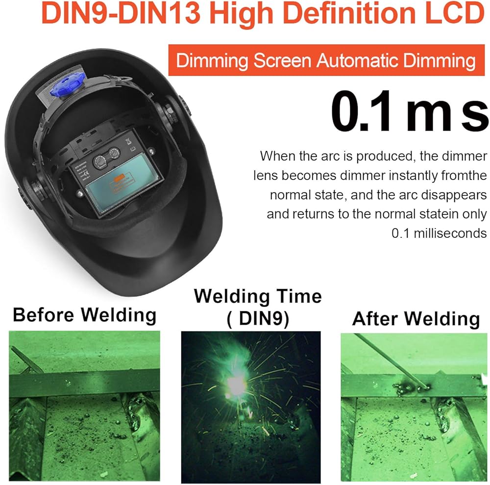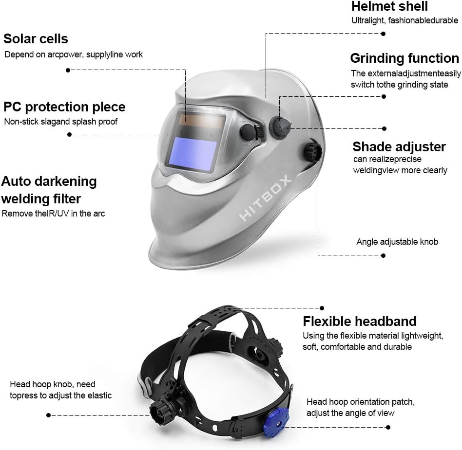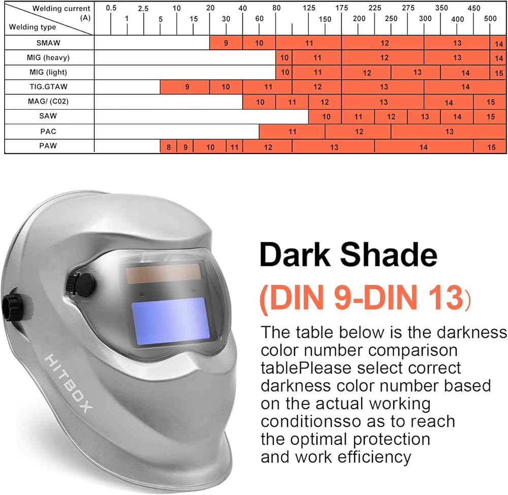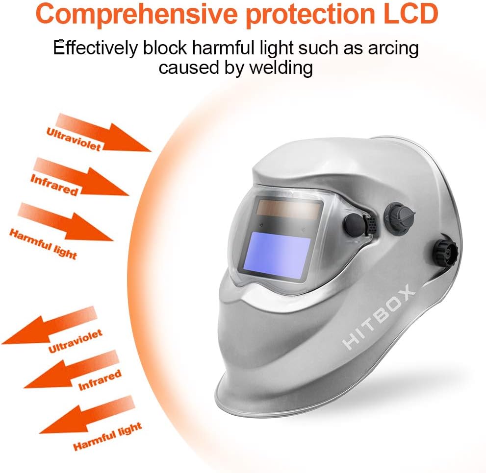 【حماية فائقة للعين】خوذة لحام هيتبوكس بتصميم هيكل آمن يتوافق مع المبدأ المريح. يتحول فلتر التعتيم التلقائي بكفاءة من الضوء إلى الظلام في 1/25000 ثانية، ويمكن أن يمنع تلف عينيك من الومضات غير المتوقعة. في حالة حدوث عطل كهربائي، يظل جهاز اللحام محميًا من الأشعة فوق البنفسجية والأشعة تحت الحمراء. اختيار ذكي للسلامة أثناء استخدام Arc أو Mag أو Mig أو Mma أو Stick أو Tig Welding أو Plasma Cutting.