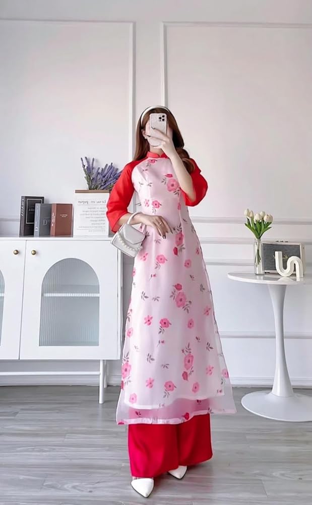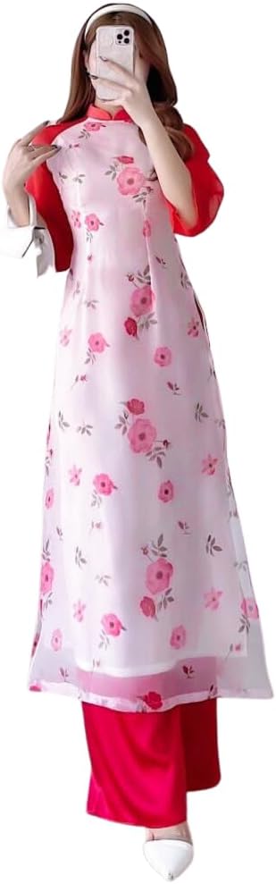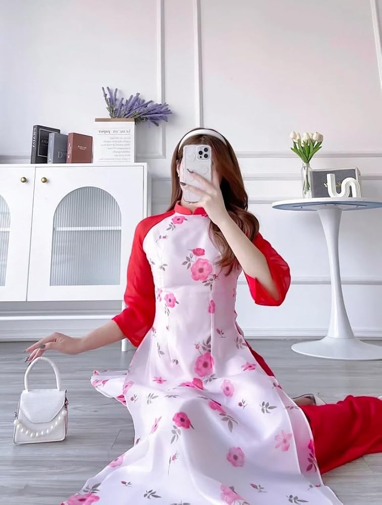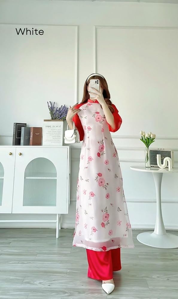 ❣️ This set includes one Ao Dai Top and 1 Pant Style: Modernized Material: Silk, Chiffon. Non-Stretch