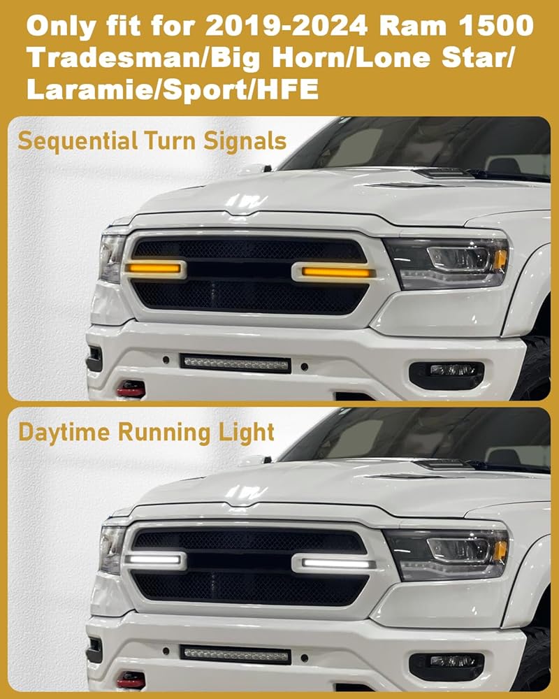 【ملاءمة مثالية】--يناسب فقط 2019-2024 Dodge Ram 1500 Tradesman/Big Horn/Laramie/Lone Star/Sport/HFE Grill، غير مناسب للشواية المتمردة/Limited Longhorn/Limited/TRX/Laramie Longhorn Grill.