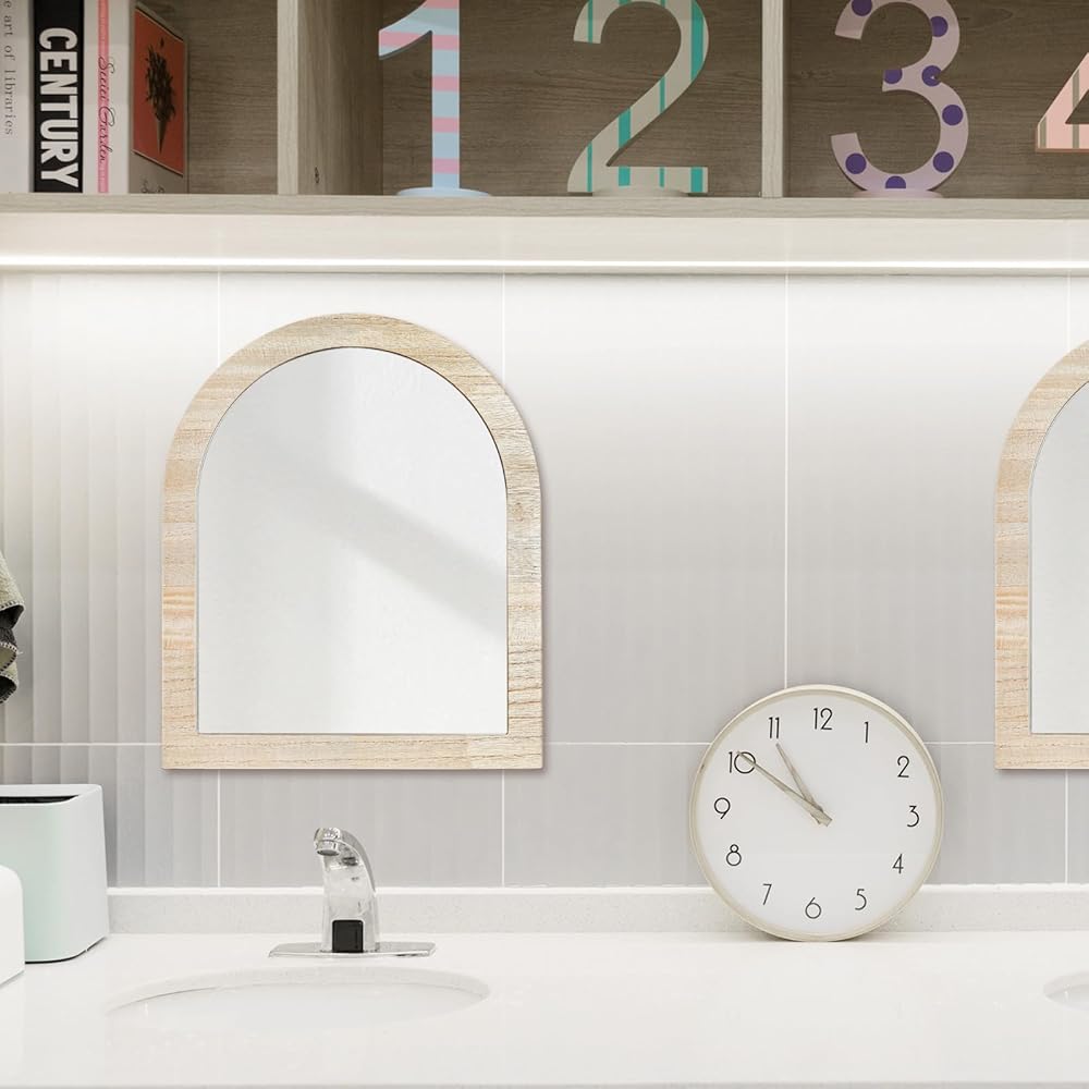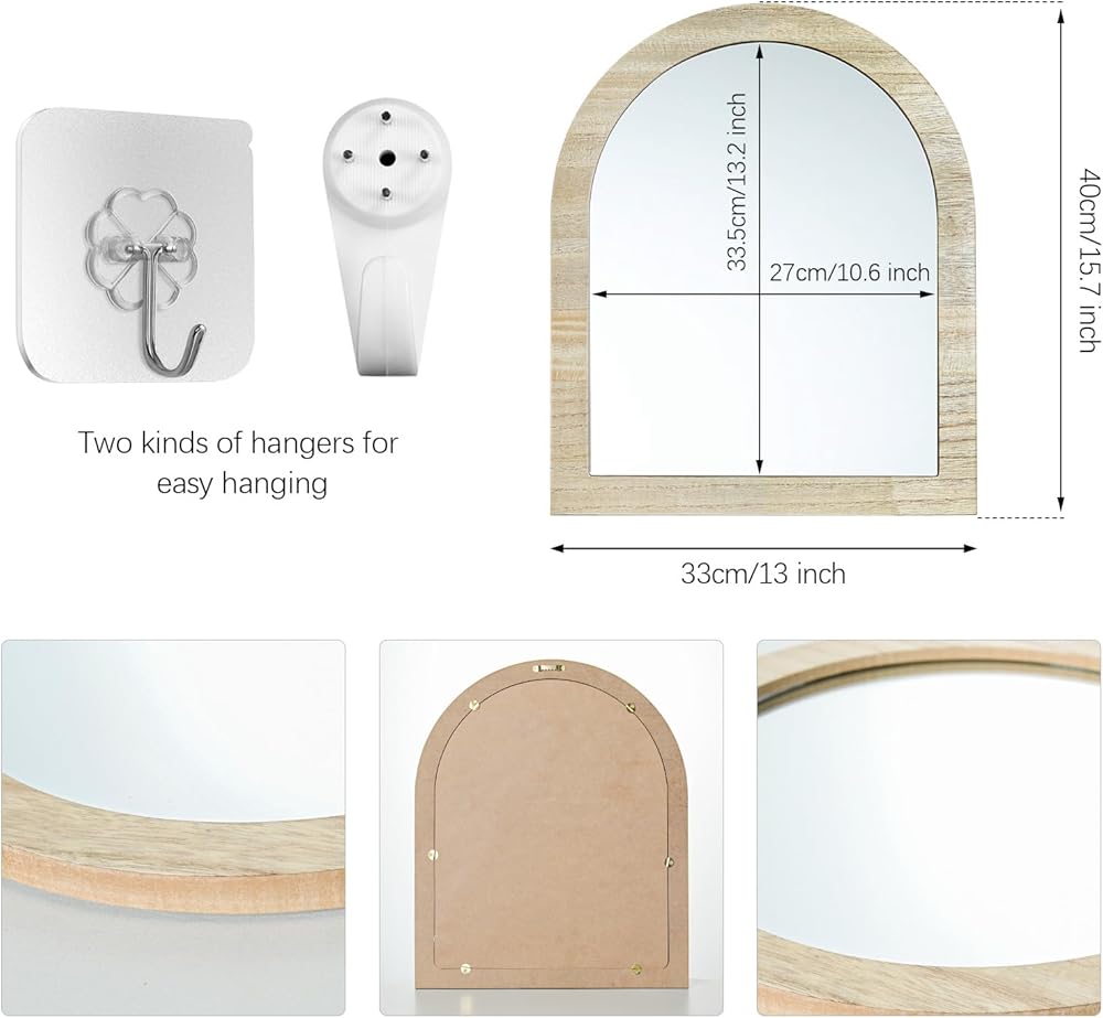 • Various usage: small wall mounted mirror great for nursery, kids room, farmhouse, bedroom vanity, living room, entryway, gallery wall and hallway, put on the desk is also a beautiful view; natural wooden color create a relaxed ambiance;