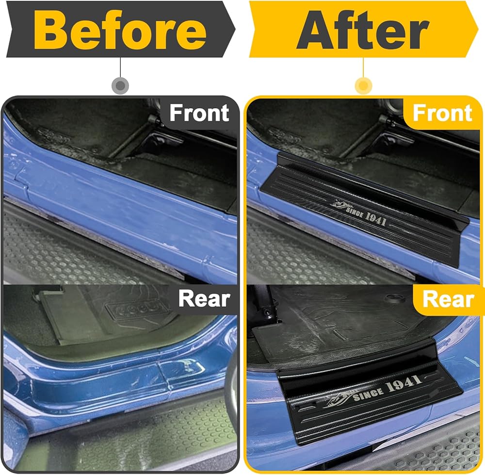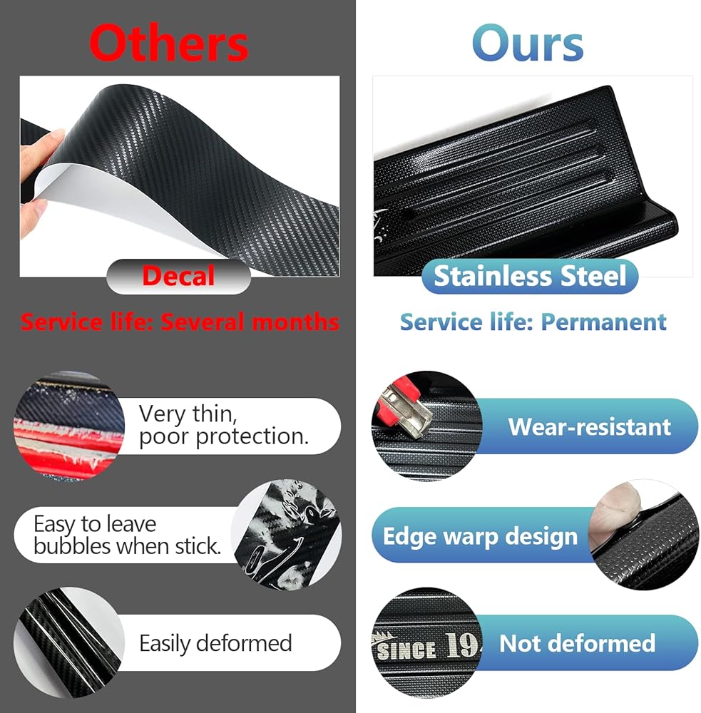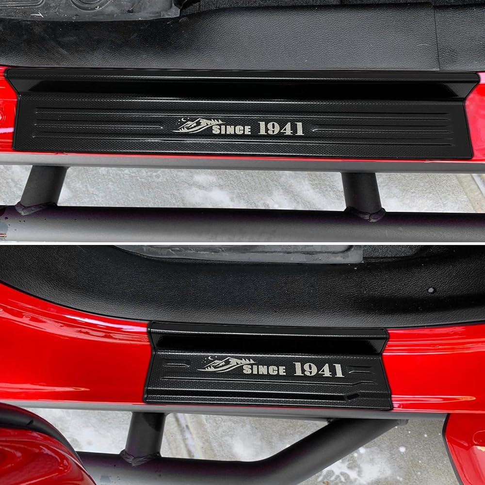 واقي دخول من الفولاذ المقاوم للصدأ لعام 2018-2022 2023 Wrangler JL JLU واقي عتبة الباب واقي حافة الباب مع ملصق العلم الأمريكي، أسود