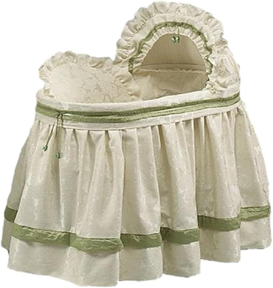 Surround your royal offspring with this majestic king two-toned bassinet set. Made from a fine selection of satin fabrics, the full length skirt gathers below a thick satin waistband accented with a dainty ribbon. The coordinating ruffled hood cover boasts delicate roses dangling from it's ribbon ends. This baby doll baby king blue bassinet set is sure to add a regal touch to your nursery. Bassinet not included. Machine washable. Fully manufactured in the USA.