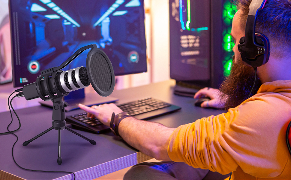 توصيل وتشغيل USB: سهل الاستخدام مع كابل USB واحد فقط. لا حاجة إلى برنامج تشغيل إضافي مما يبسط عملك ونفس الوقت. متوافق مع ويندوز وماك وPS4 وXbox وما إلى ذلك. حتى تتمكن من استخدامه في حالة أكبر. مناسب للعروض التقديمية والمدونات الصوتية والتكبير وسكايب والتسجيلات والرسائل الفورية والألعاب والبث.