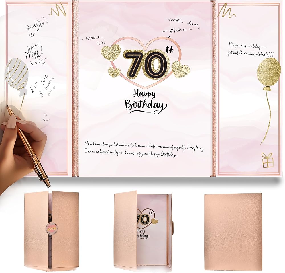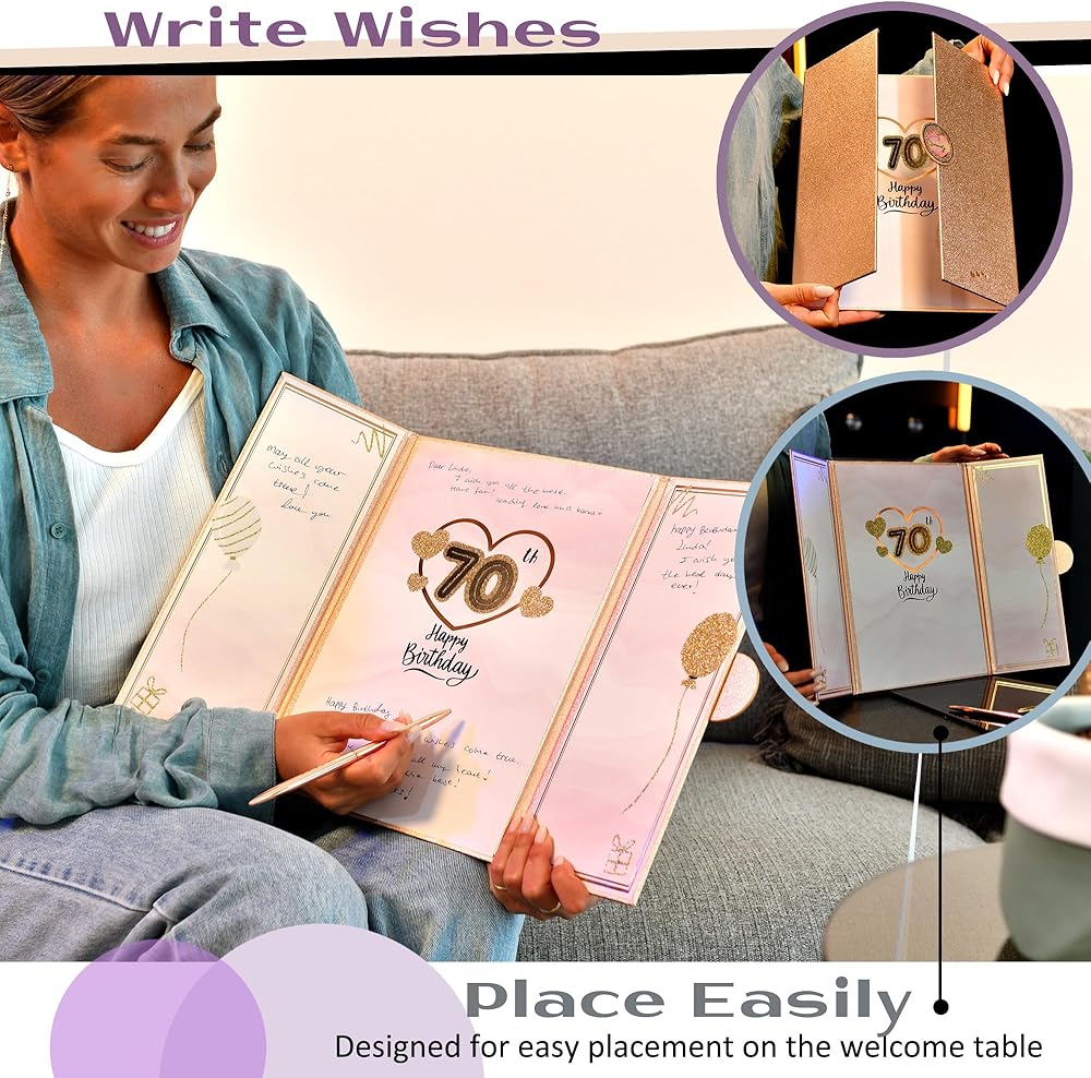 هل تحتاج إلى بطاقة التوقيع الخمسين الخاصة؟ يعد كتاب الضيوف الخاص بنا مثاليًا للهدايا أو قطع الطاولة المركزية، مما يسمح للضيوف بترك رسائل من القلب. احتفل مع كتاب الضيوف الدائم الخاص بنا، الذي يعتز به الضيوف والأصدقاء والعائلة لسنوات.