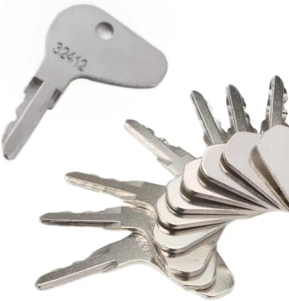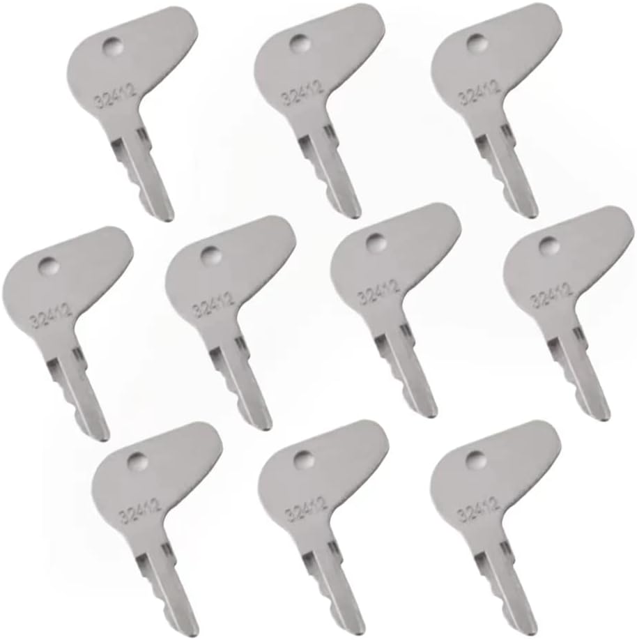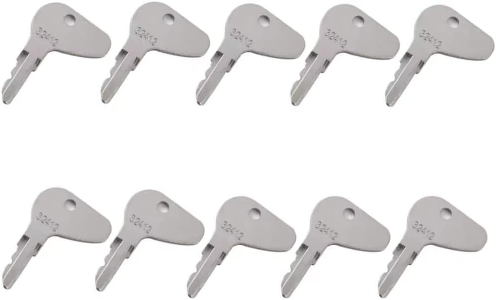 Part Number:32412,H32412 35260-31852,3526031852,ELI80-0098,10253507100, ELI800098, 27800501200. Kubota Models: G3200 G4200 G5200 G6200 L1275 L2050DT L2250 L2250DT L235 L2350 L2350DT L2500 L2550 L2550DT L2600 L2600DT L2650 L2650DT L275 L2800DT L2850 L2850DT L2900 L2900DT L2950 L2950DT L3000 L3000DT L3010 L3010GST L3240 L3250 L3250DT L3300 L3300DT-GST L3350DT L3400DT L3410 L3450 L3450DT-GST L35 L3600 L3750DT L3830 L3830GST L3940 L4150DT L4200 L4200GST L4240 L4310 L4330 L4350 L4400 L4610 L4740 L4850 L5030 L5040 L5240 L5450 L5740 M4700 M4700DT MX4700X MX4700H MX4800DT MX4800F MX4800H M4800SUD-F M4800SU-F M4900SU M4900SUDT MX5000DT MX5000F MX5000SU MX5100DT MX5100F MX5100H MX5200DT MX5200H M5400 M5400DT M5400DT-N MX5800H. Compatibility:Fits certain models of Mahindra, Mitsubishi, and Case tractors. Reliable Quality:Our Ignition keys H32412 undergo rigorous testing to ensure they function perfectly, offering you a reliable solution to replace lost or damaged keys. Part Number:166 Forklift Key can replace Generic 166, Ilco 1430, Gradall 7738-4578, 91033317, Daewoo A214062,KM31166P, Gradall 7738-4578, Hyster 51335040, 186304, Mustang 090-32025, 090-32026 Heavy Equipment. Compatibility:Ignition Key Compatible with Cat Forklifts # 6T-2663, Clark Forklifts (Some), Daewoo Skid Steers (430, 440, 450 and more), Dynapak, Gehl Skid Steers, Generic Forklift Ignitions, Gradall, Telehandlers, Hyster Forklifts, Hitachi, Hypac, Ingersol Rand Forklifts, Ingersol Rand Rollers, JLG (Some), Crown Lifts (Some), Komatsu Forklifts, New Holland LB620, Mustang Skid Steers, Shuttlelift Lifts, Skytrak Forklifts, Yale Forklifts (Some), and others. Reliable Quality:Our forklift keys undergo rigorous testing to ensure they function perfectly, offering you a reliable solution to replace lost or damaged keys. Generous Package:Get more bang for your buck with our package that includes 10 keys and 10 key rings, giving you plenty of spares for your fleet.
