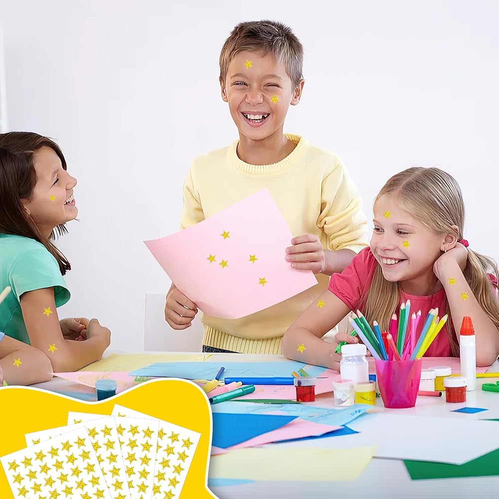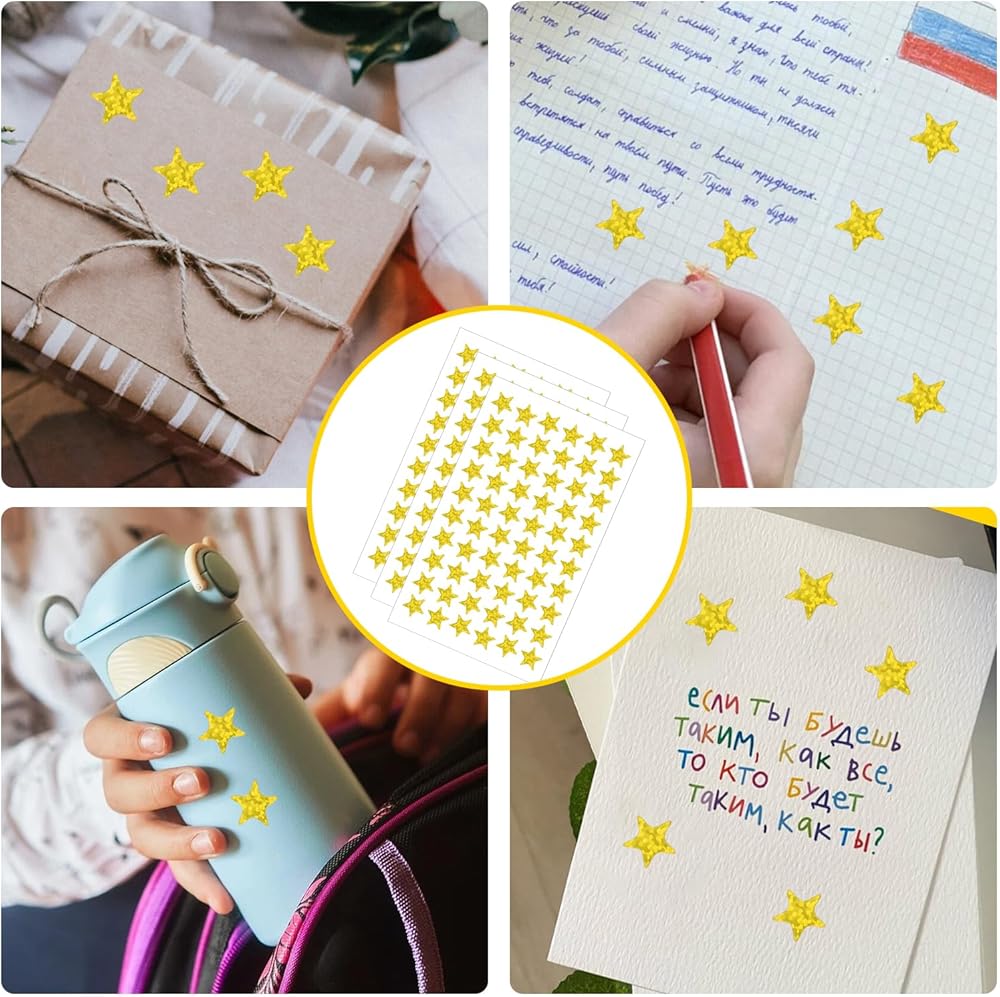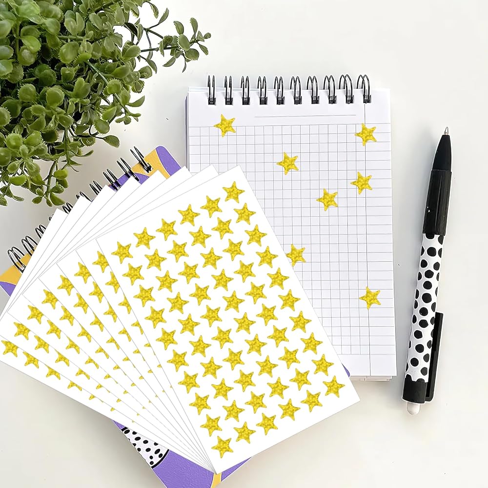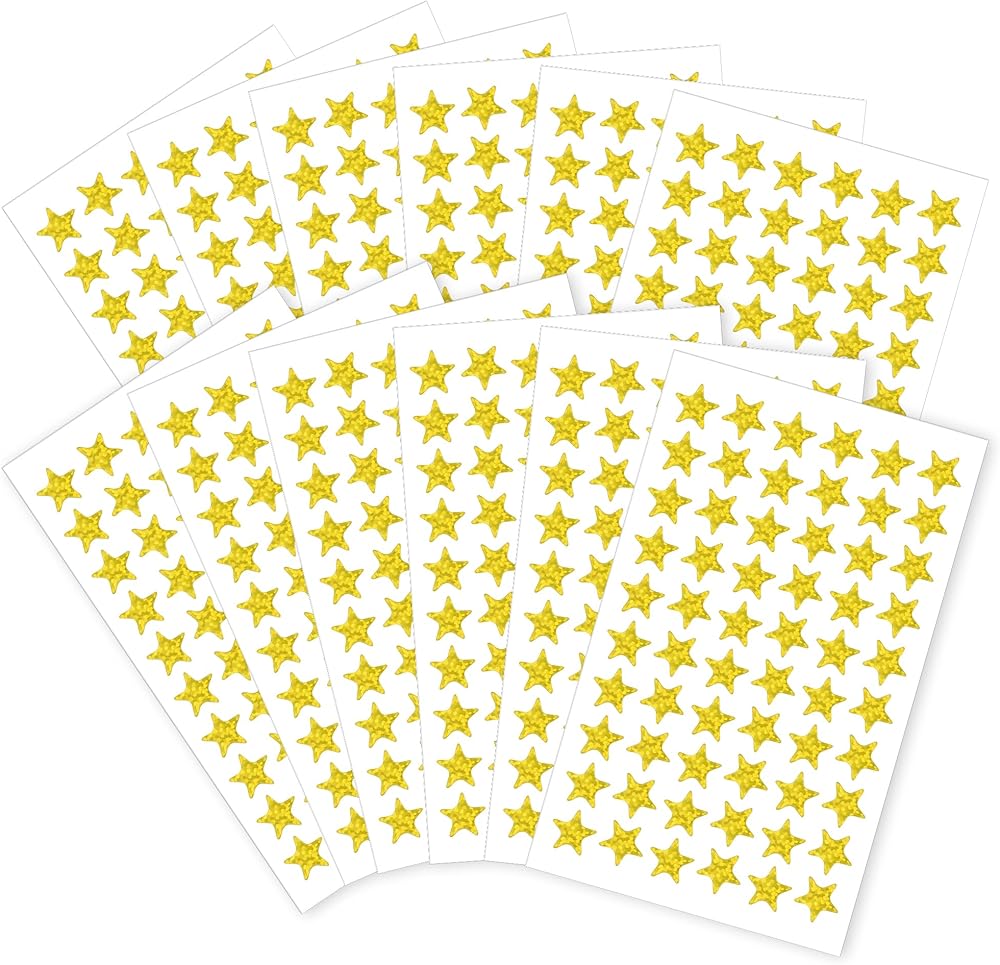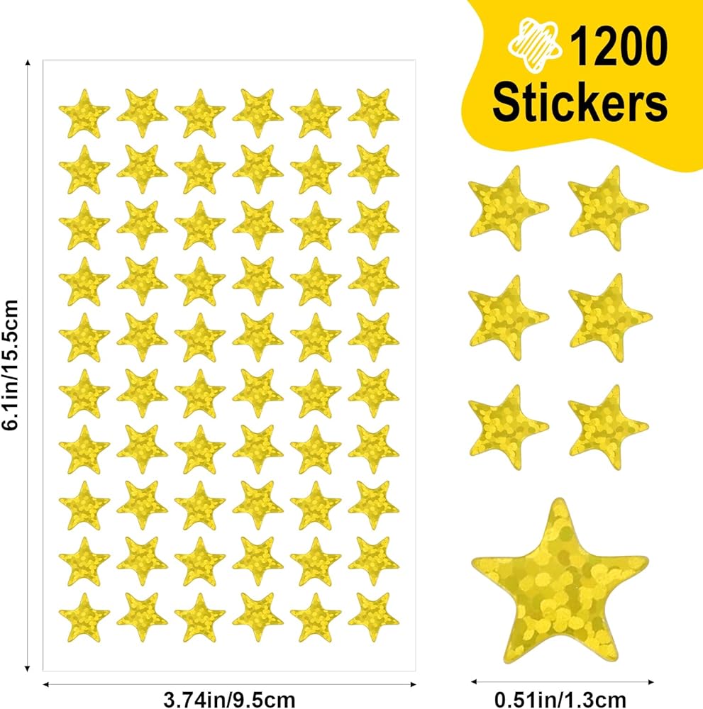 ⭐Generous Quantity: Each purchase includes 10 sheets of gold foil star stickers, providing a total of 1200 pieces. 0.5" Diameter Gold Star Stickers