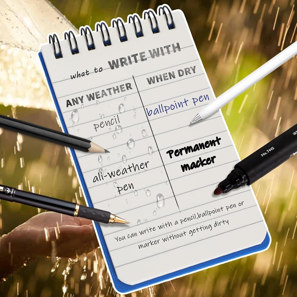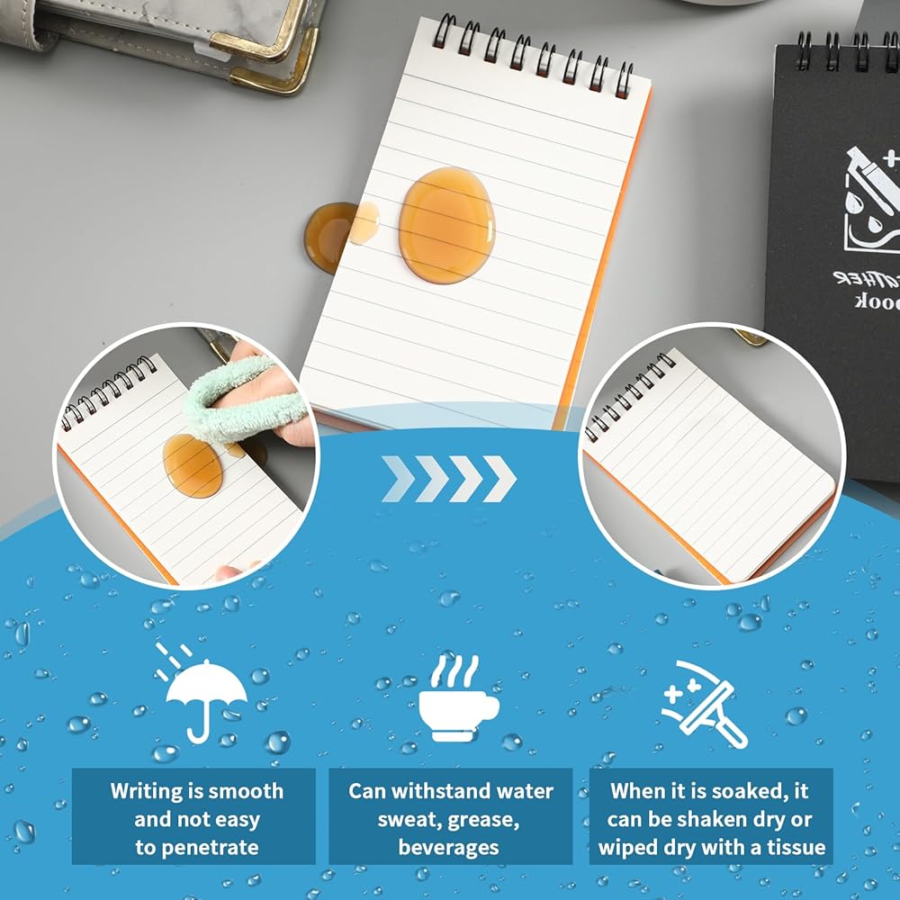 دفتر ملاحظات JULMELON للجيب مقاوم للماء، 3 × 5 مفكرة حلزونية صغيرة مقاومة للطقس، دفتر ملاحظات حلزوني صغير مذكرة ستينو لجميع الأحوال الجوية للمنزل والمكتب والكلية والمدرسة، ألوان متنوعة، 6 عبوات