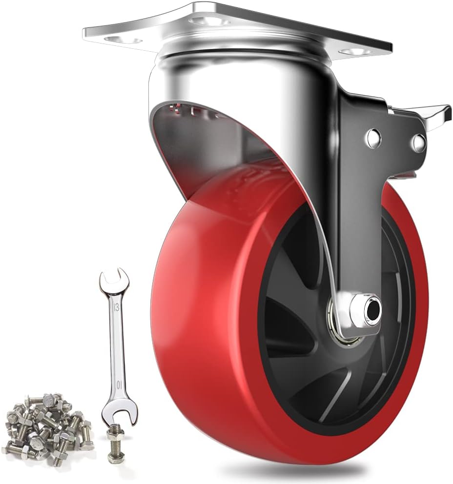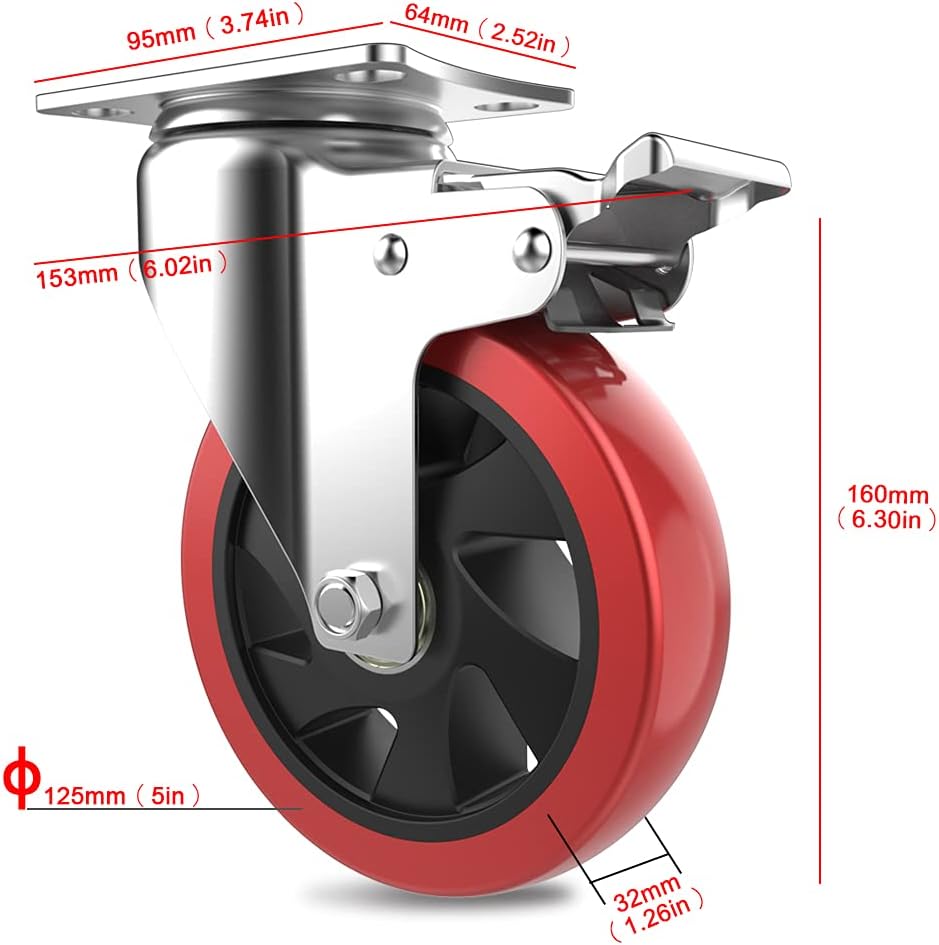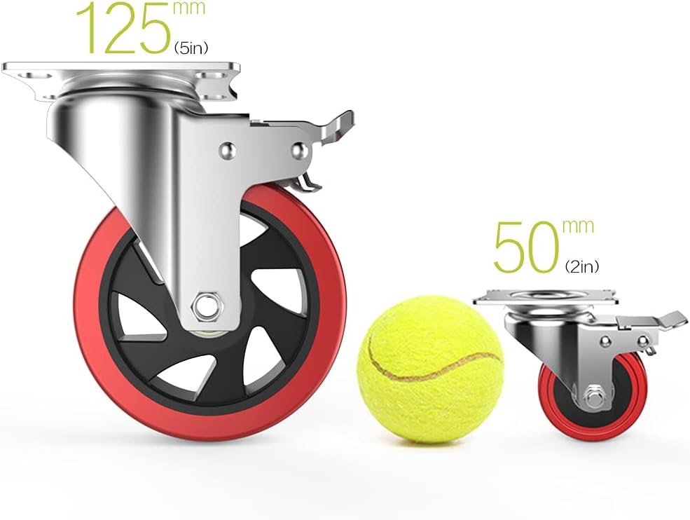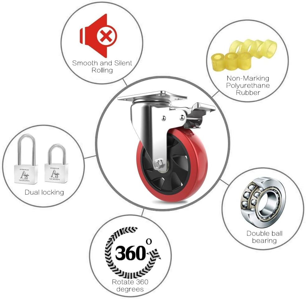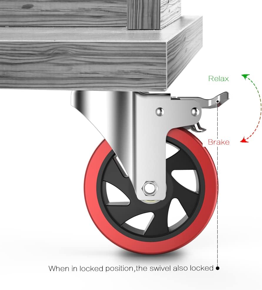 HIGH QUALITY DUAL LOCKING- The wheels made of the popular Non-Marking polyurethane rubber type, very quiet running, absorbs shock and vibrations. Ball bearing and dual locking bring a max loading capacity and safety.