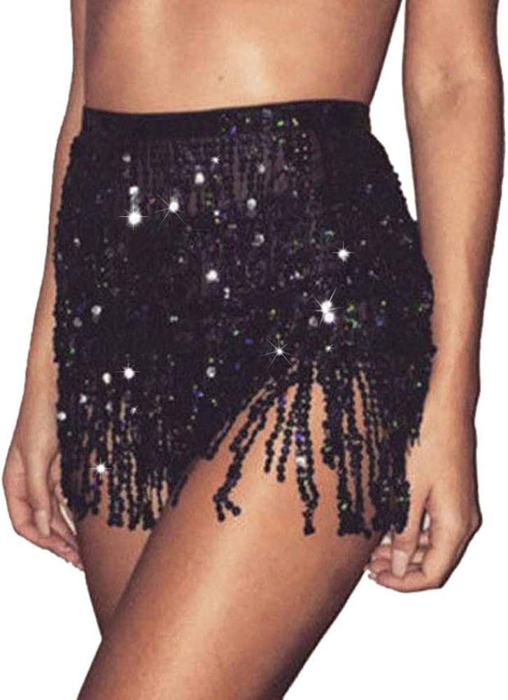 Tassel skirt is made of polyester and sequins. Lightweight and easy to wear.