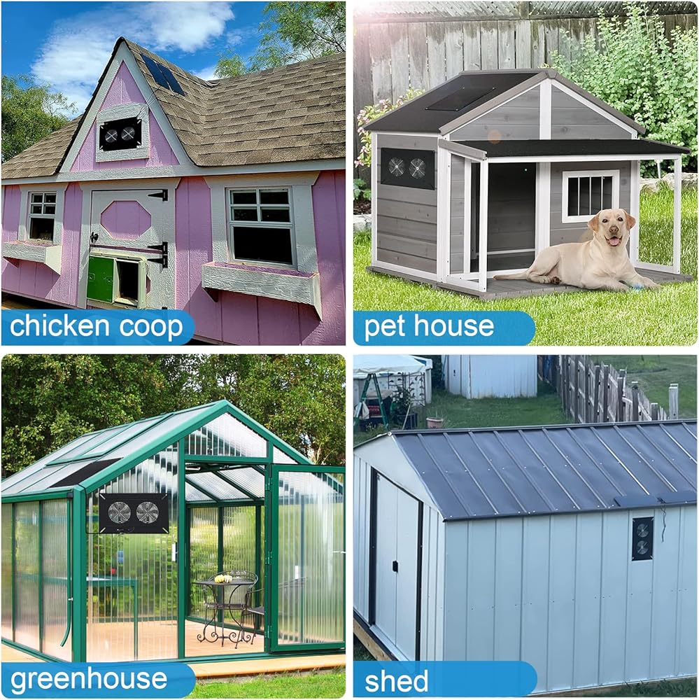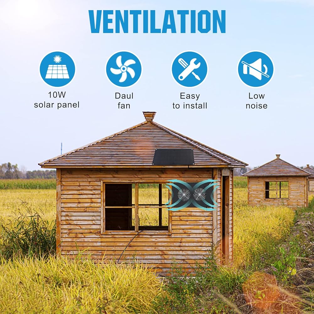 [تهوية محسنة] - مروحة الطاقة الشمسية المثالية لتهوية المساحات الصغيرة، مثالية للاستخدام في الدفيئات الزراعية الصغيرة وأقفاص الدجاج والسقائف وما إلى ذلك لتعزيز دوران الهواء بشكل فعال.