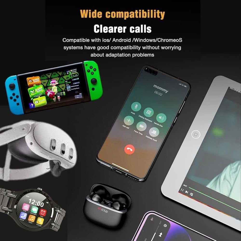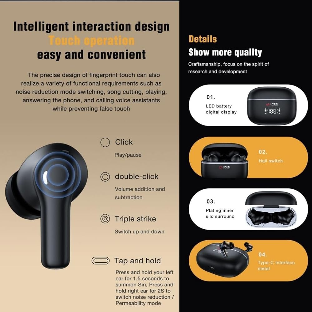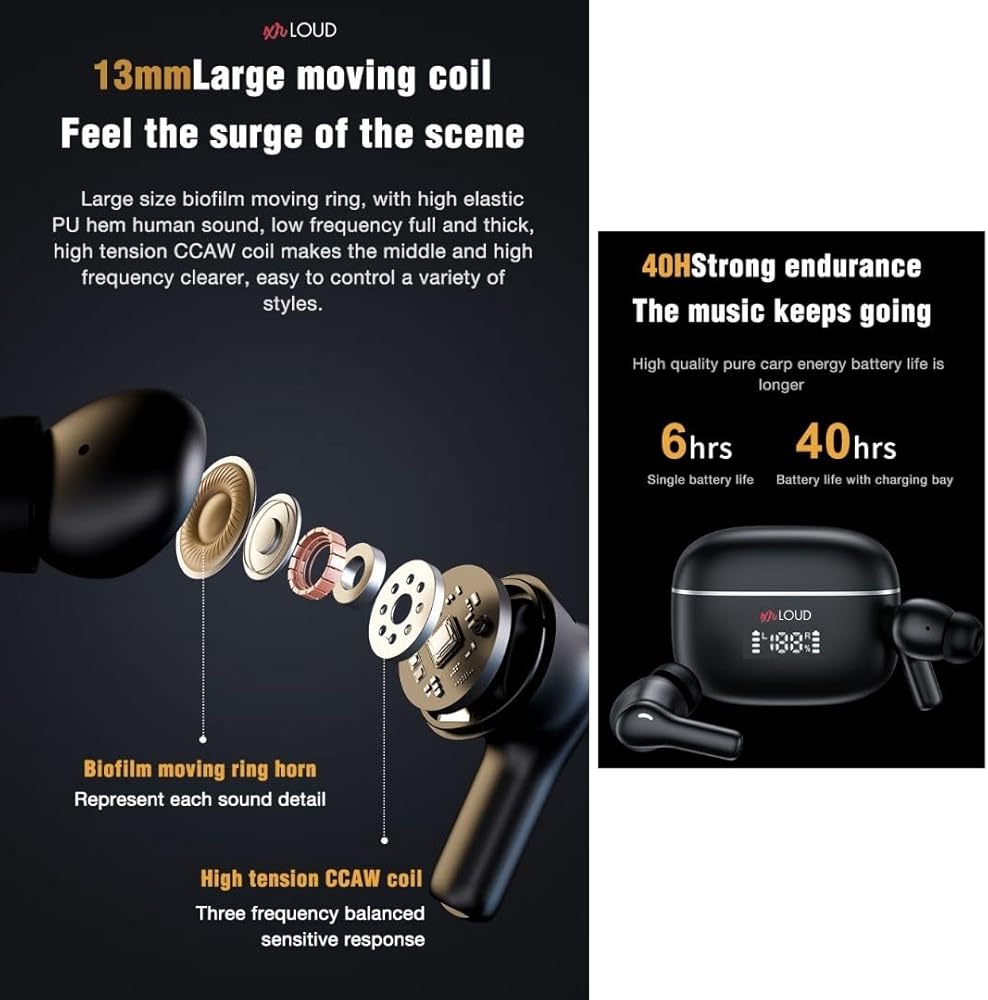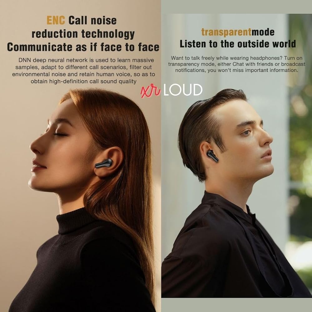 سماعات أذن XR LOUD™ الأحدث 5.4 بلوتوث M16 120H في وضع الاستعداد، 6 ميكروفونات Hybrid True اللاسلكية، شحن سريع، إلغاء الضوضاء ANC ENC، برامج تشغيل 13 ملم، عناصر تحكم باللمس، تحدي صوت لا يهزم
